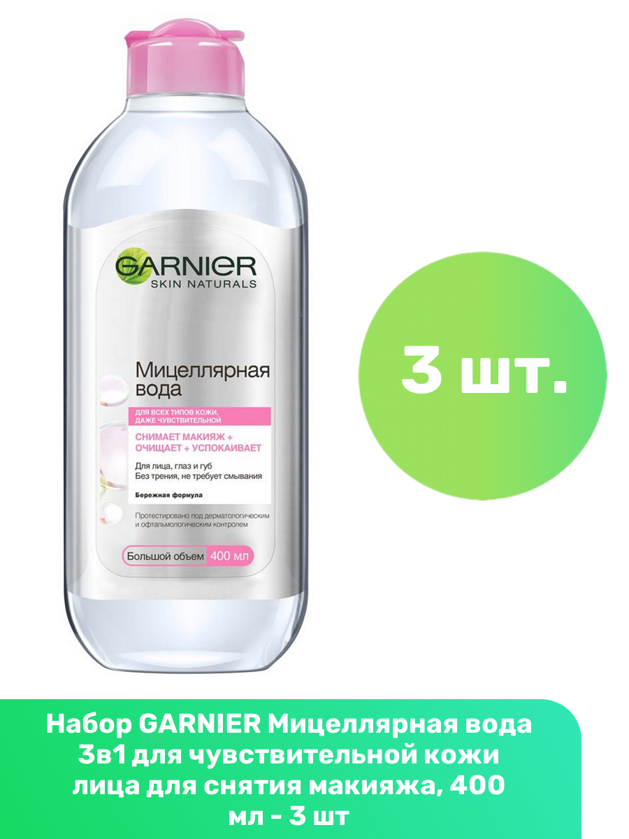 Купить Garnier Вода мицеллярная 3 в 1 для лица, глаз и губ, 400 мл, 3 шт