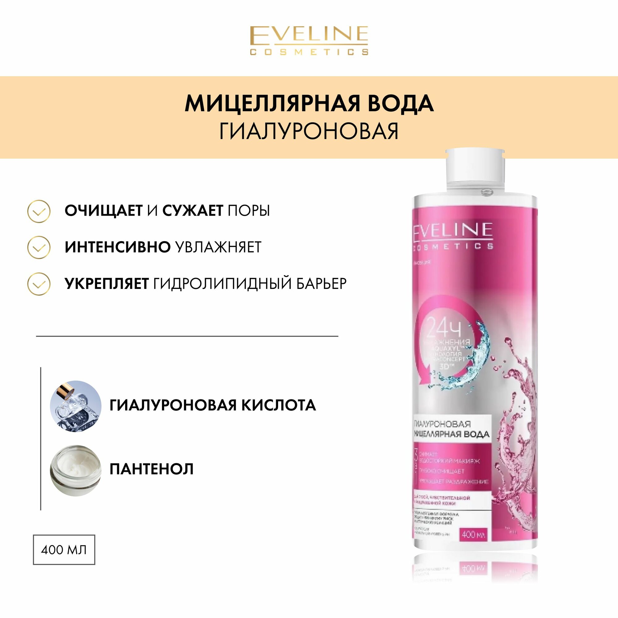 Мицеллярная вода EVELINE ORGANIC Алое + Коллаген (очищающая) 400 мл