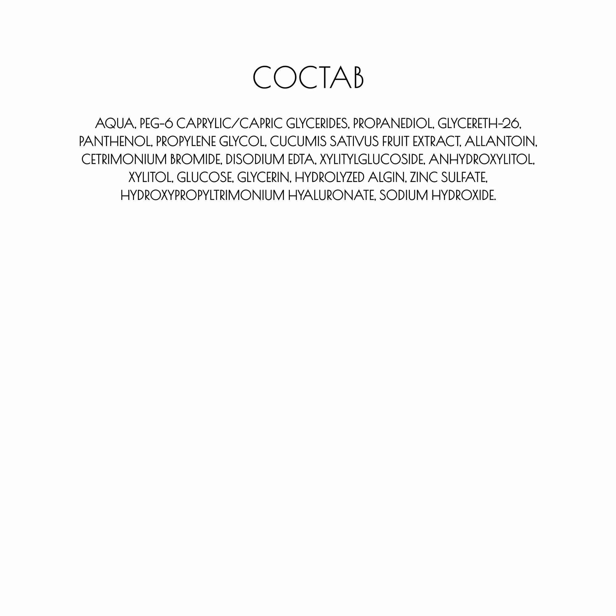 | Состав | aqua, peg-6 caprylic/capric glycerides, propanediol, glycereth-26, panthenol, propylene glycol, cucumis sativus fruit extract, allantoin, cetrimonium bromide, disodium edta, xylitylglucoside, anhydroxylitol, xylitol, glucose, glycerin, hydrolyzed algin, zinc sulfate, hydroxypropyltrimonium, sodium hydroxide |