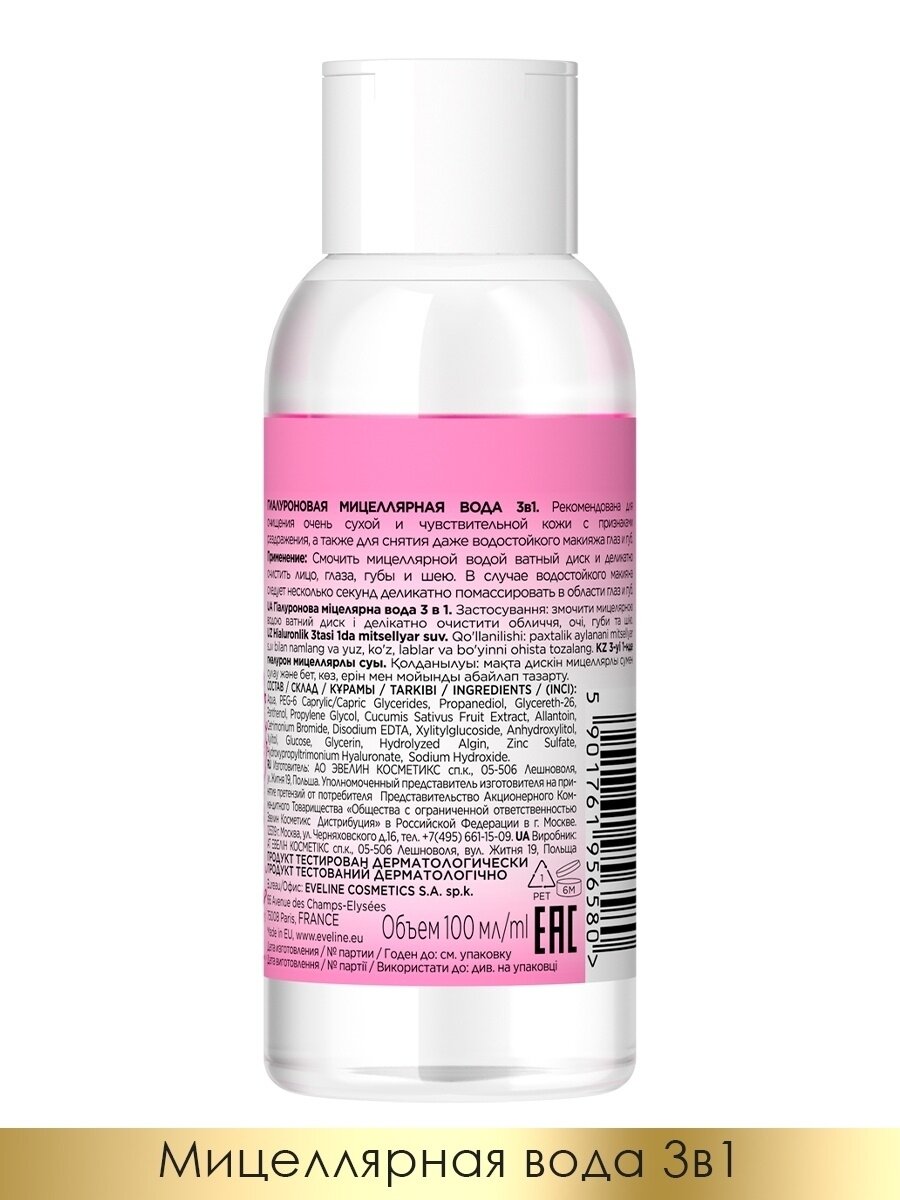 Мицеллярная вода 3в1 EVELINE FACEMED+ гиалуроновая, 100мл