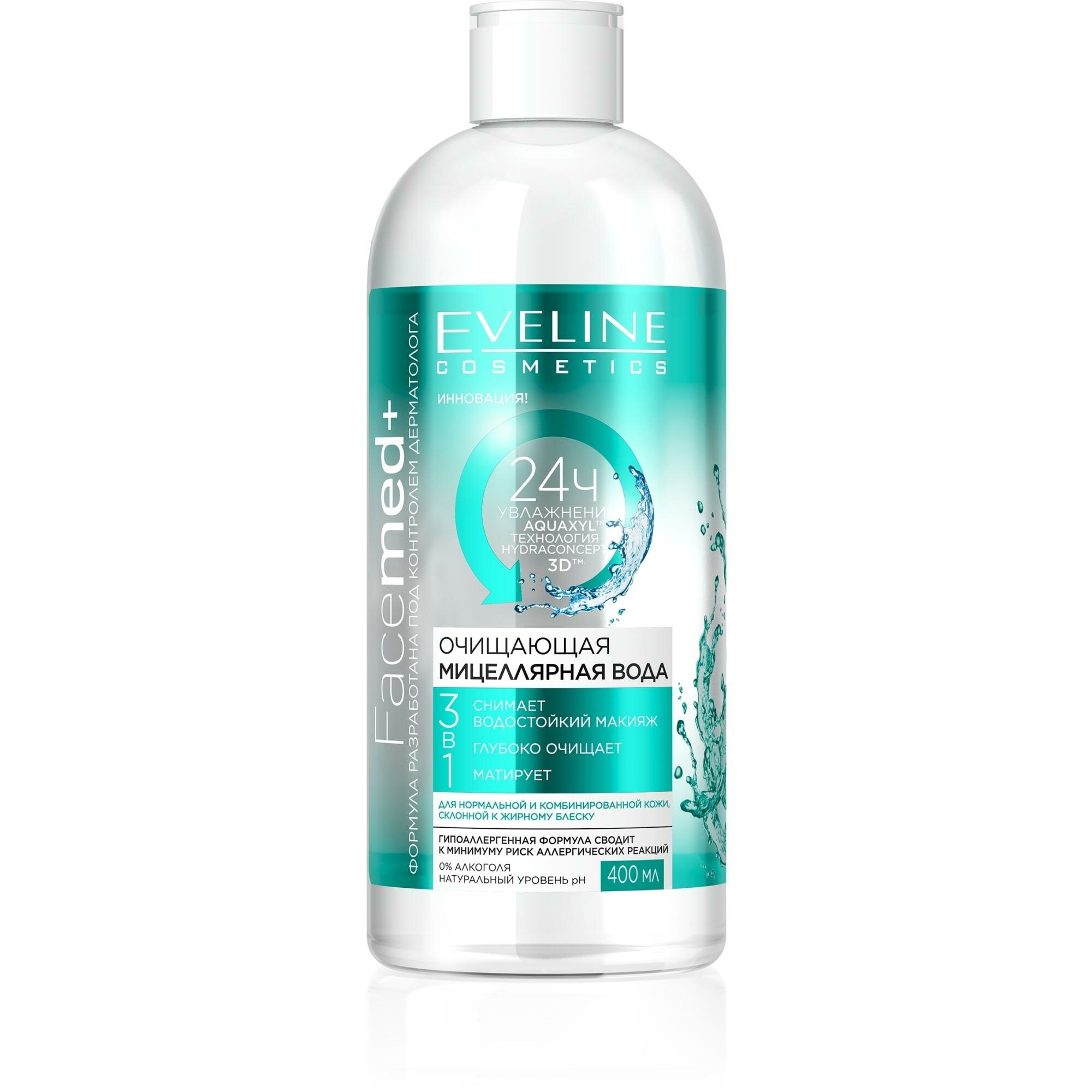 Мицеллярная вода 3в1 EVELINE FACEMED+ Очищающая для снятия макияжа, 400 мл