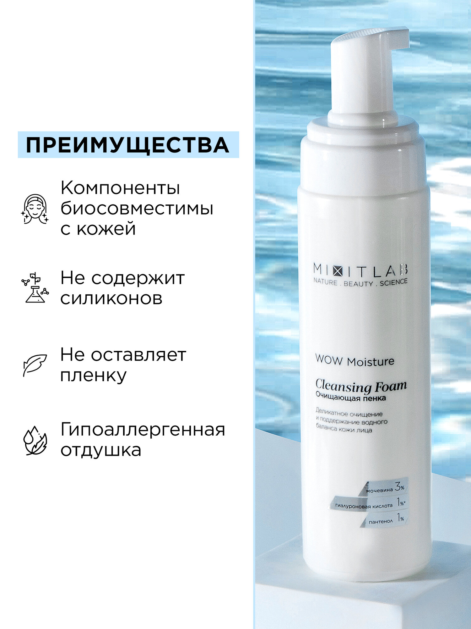MIXIT Пенки очищающие увлажняющие для умывания лица и снятия макияжа LAB WOW интересное: