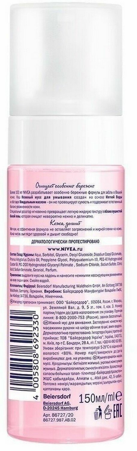 Нежный мусс-пенка для умывания NIVEA для сухой и чувствительной кожи, 150 мл.