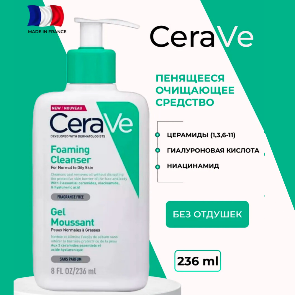 Очищающий гель - пенка для кожи лица и тела CeraVe Gel Moussant, гель для умывания без парфюмерной отдушки , для нормальной и жирной кожи, 236 мл, 1 шт.