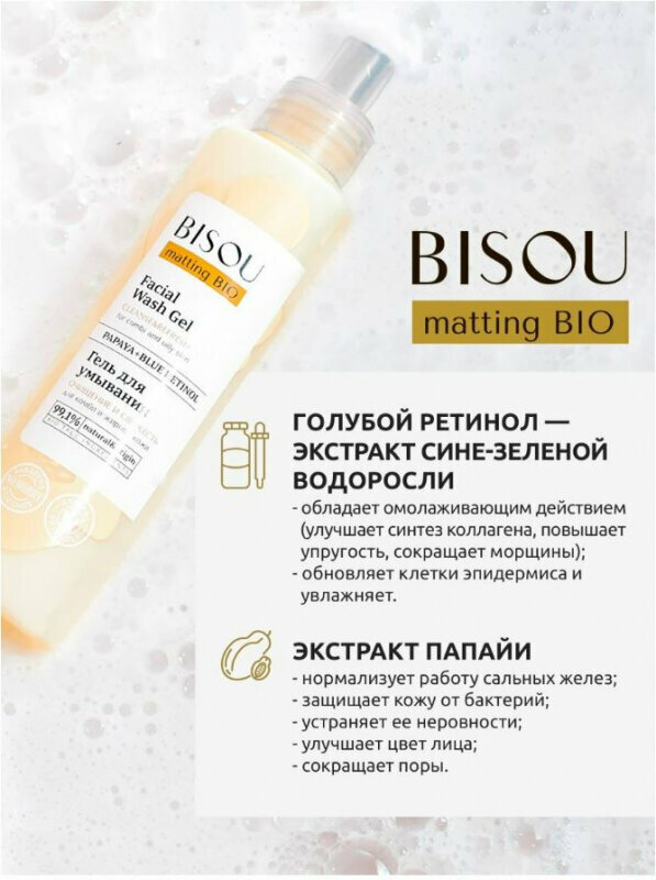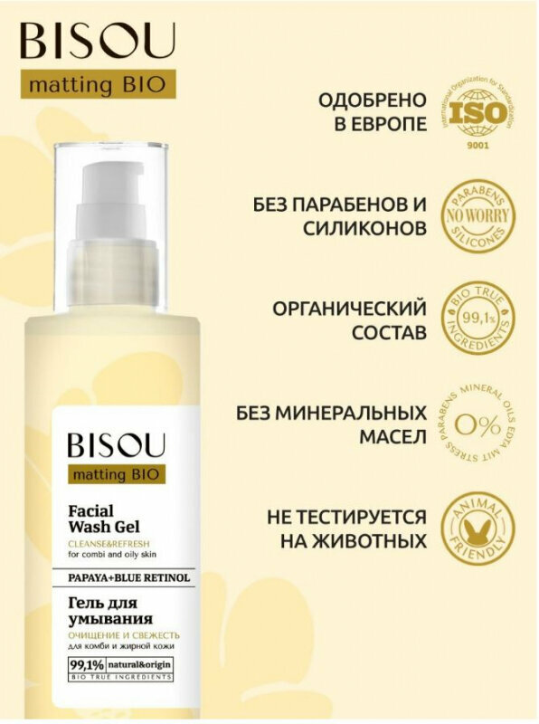 BISOU "MattingBIO" Очищение и свежесть гель для умывания, 150 мл