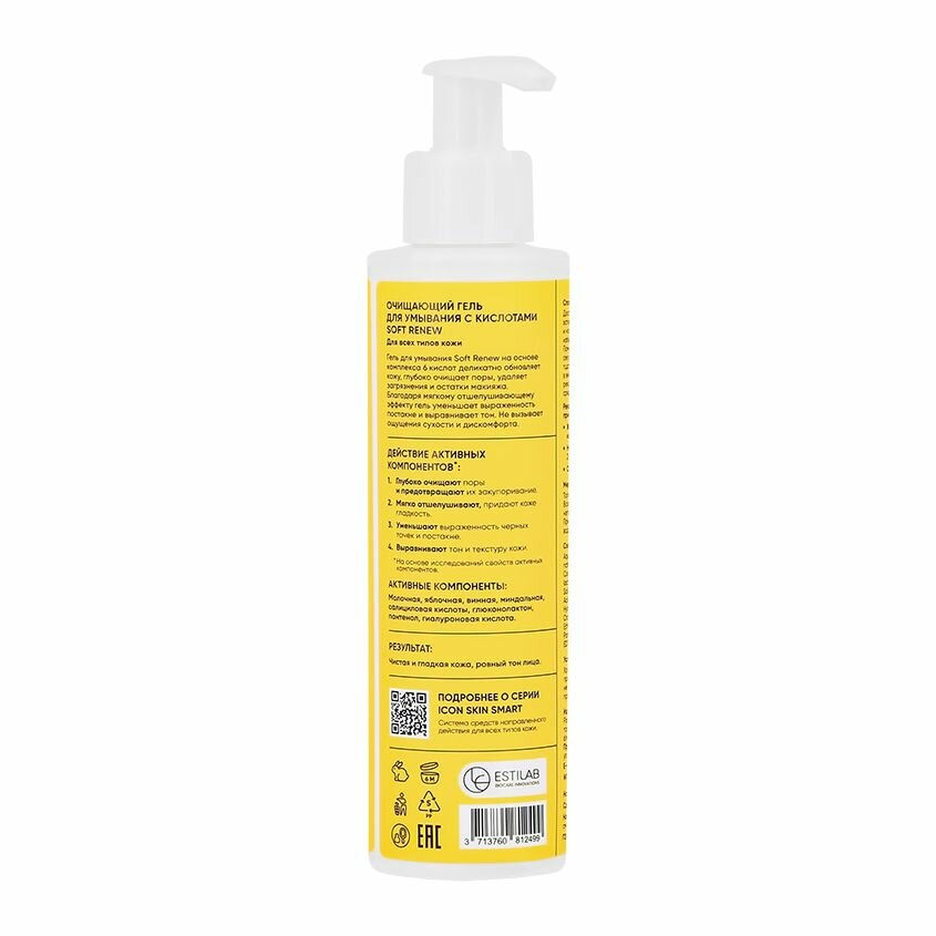 ICON SKIN Гель для умывания обновляющий SOFT RENEW с комплексом 6 кислот 5% AHA+PHA+BHA, гиалуроновой кислотой и пантенолом для всех типов кожи интересное: