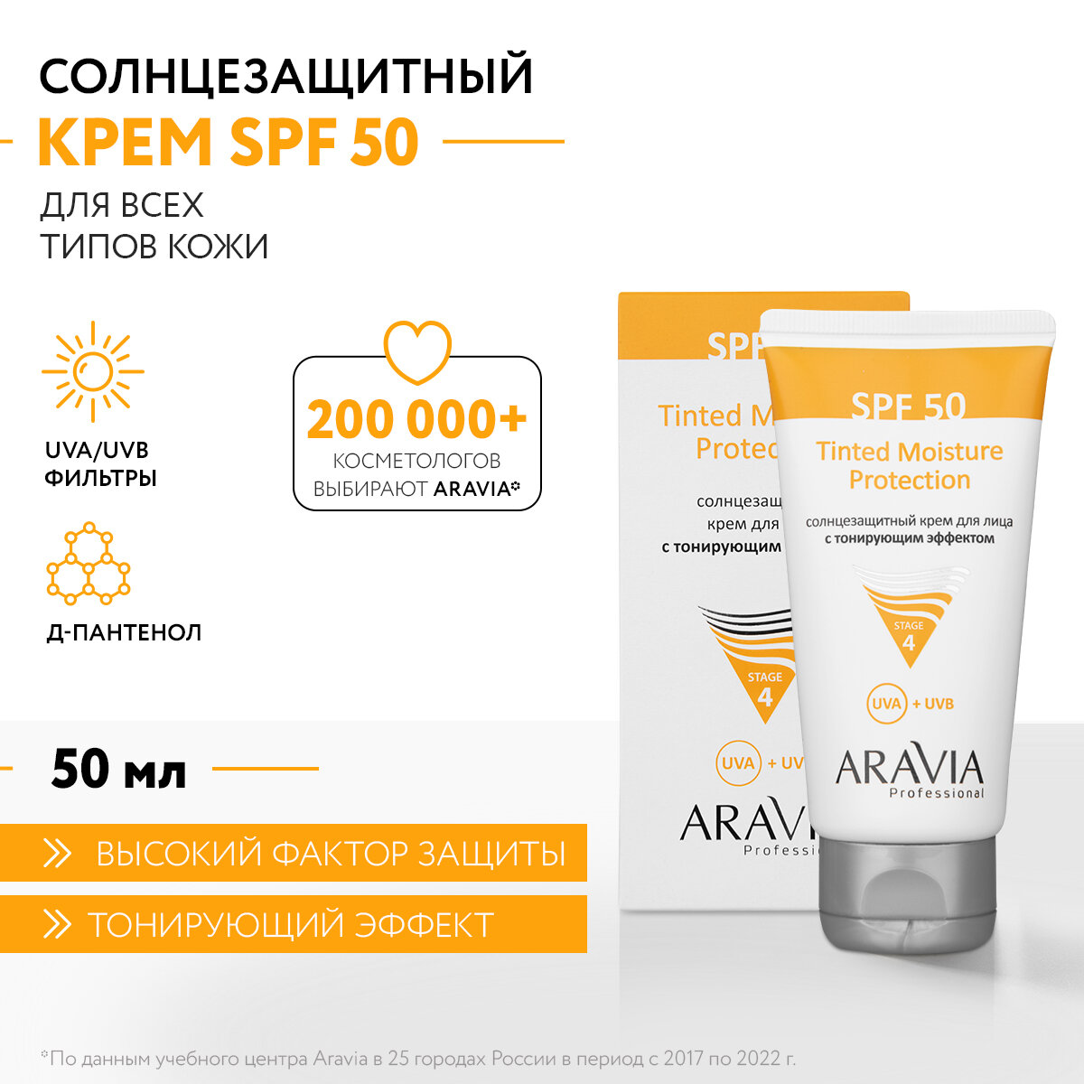 ARAVIA Солнцезащитный крем для лица с тонирующим эффектом Tinted Moisture Protection SPF 50, 50 мл