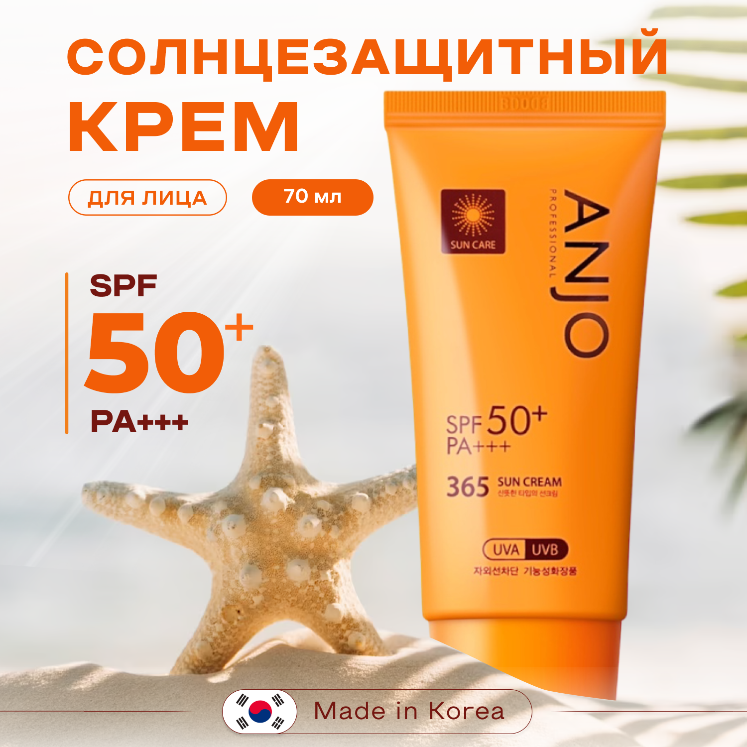 Солнцезащитный увлажняющий крем для лица с спф SPF 50+ PA+++ ANJO, защита от солнца на каждый день, оригинальная корейская косметика, 70 мл