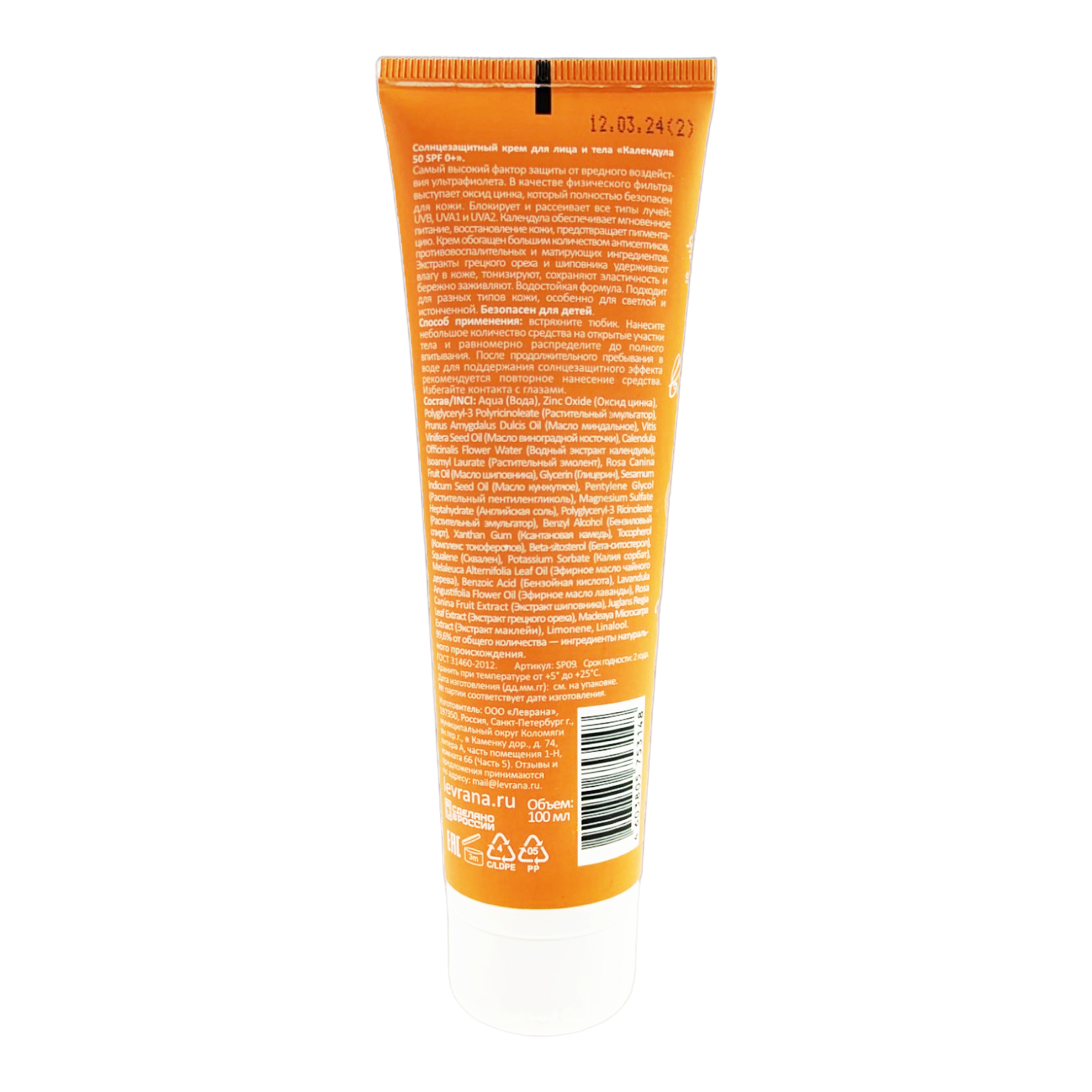 Levrana Солнцезащитный крем для лица и тела Календула 50 SPF 0+, 100 мл интересное: