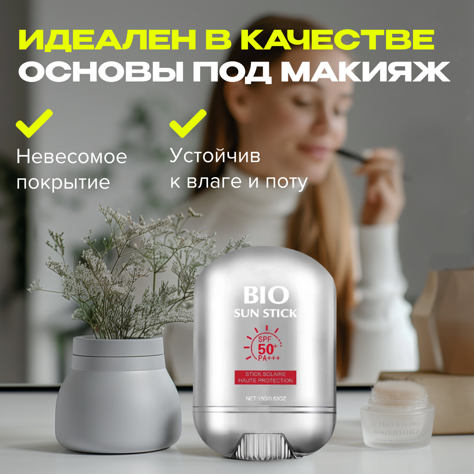 Крем-стик солнцезащитный увлажняющий для лица и тела amable SPF50. Корейские технологии