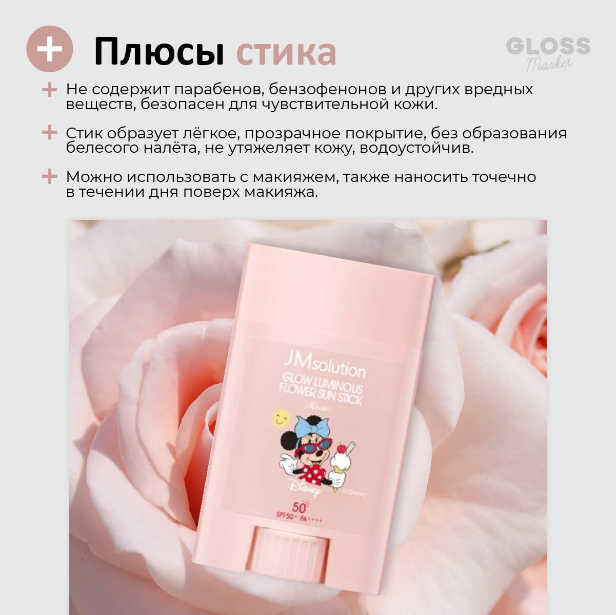 Jmsolution Солнцезащитный стик с экстрактом розы SPF50+PA++++ / Glow Luminous Flower Light Sun Stick Disney Mini, 21 г