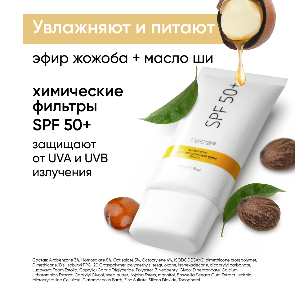 Солнцезащитный увлажняющий крем Cosmeya SPF 50 для всех типов кожи интересное: