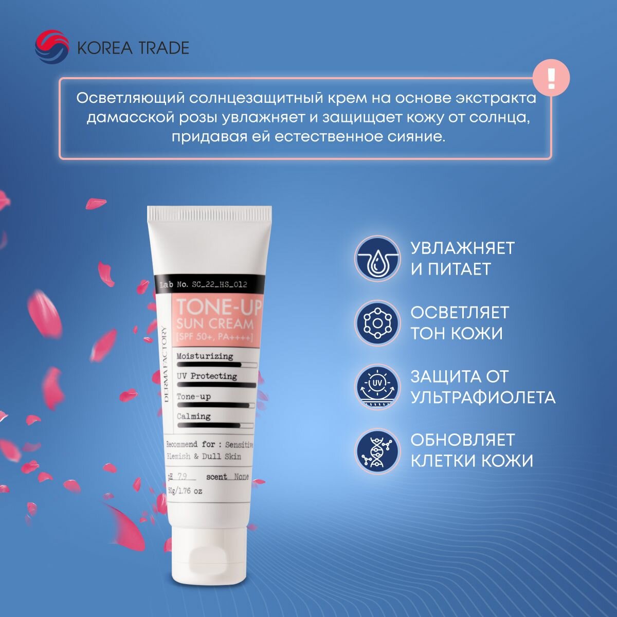 Derma Factory Крем солнцезащитный увлажняющий - Waterful tone-up sun cream SPF 50+ PA+++, 50мл