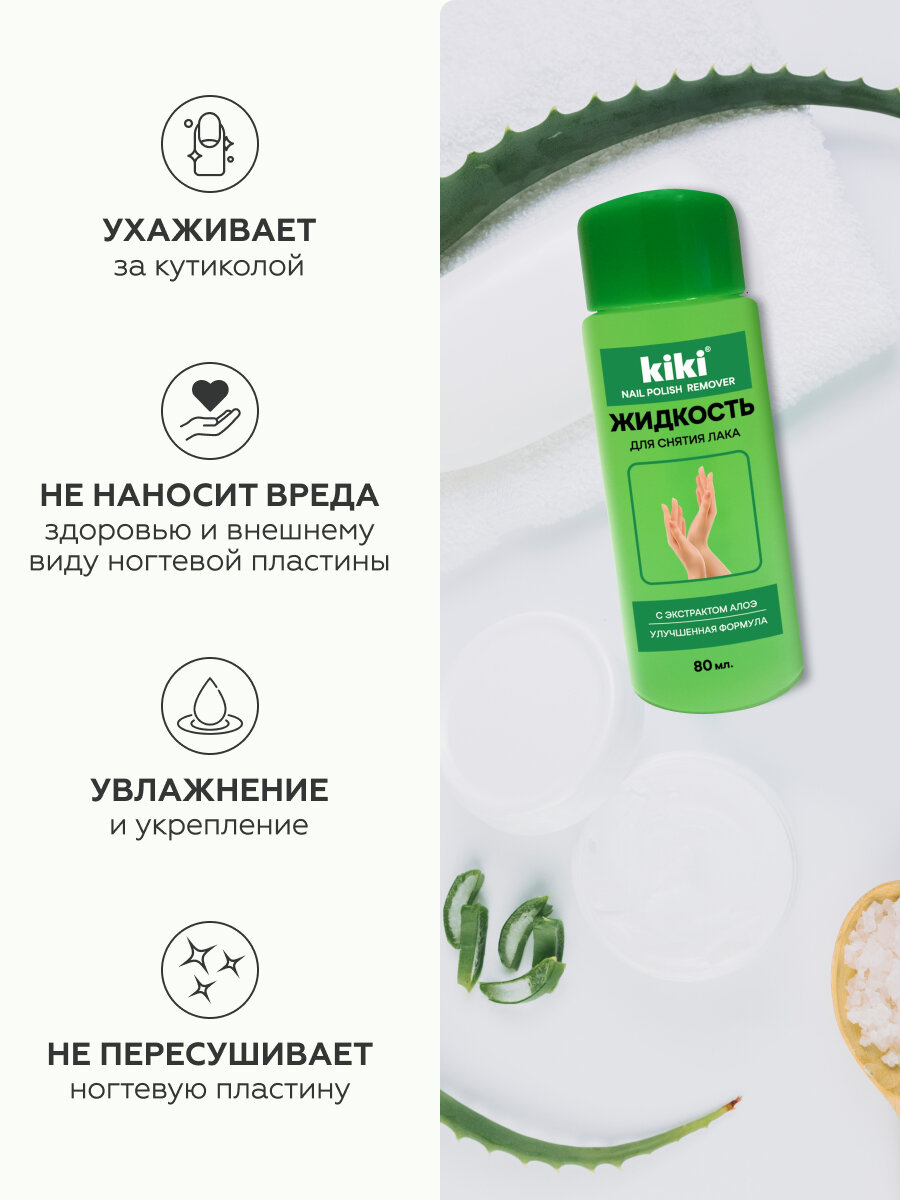 Жидкость для снятия лака Kiki, с экстрактом алоэ, 80 мл. интересное: