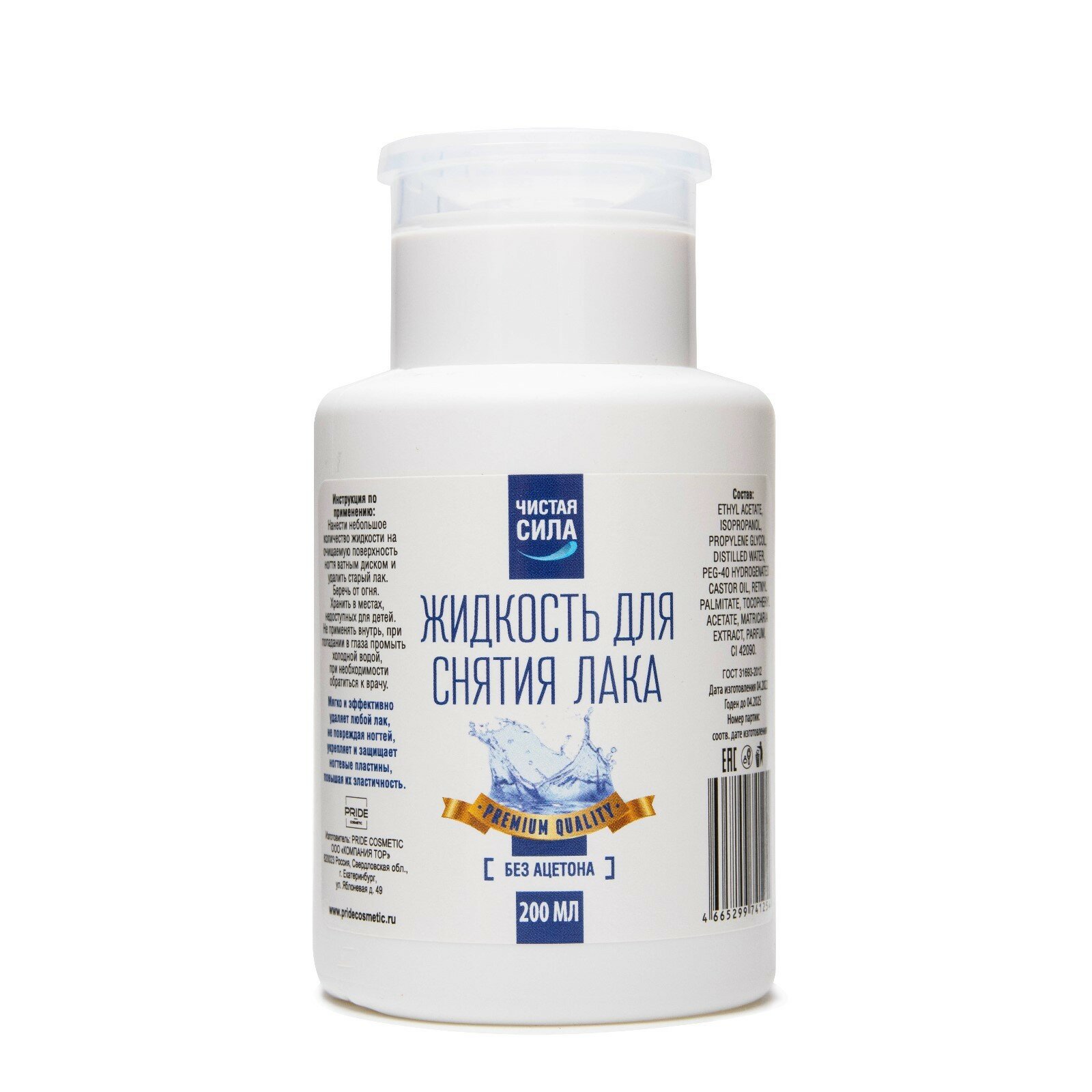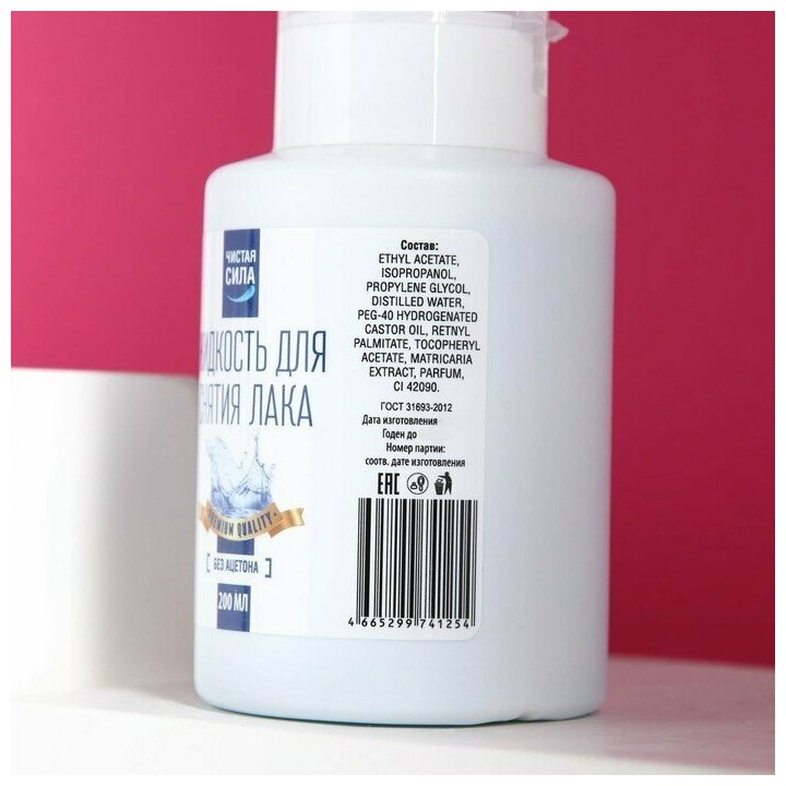 Ниже Вы можете прочитать отзывы на Жидкость для снятия лака Чистая Сила без ацетона (с помпой для ватных дисков) 200 мл, ознакомится с подробными характеристиками, посмотреть интересные обзоры и фотографии на Жидкость для снятия лака Чистая Сила без ацетона (с помпой для ватных дисков) 200 мл.