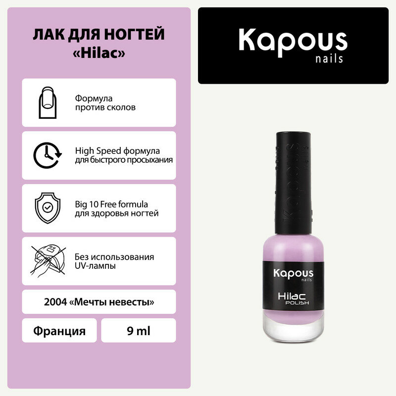 СохранитьЛак для ногтей Kapous "Hi-Lac", мечты невесты, 9 мл интересное: