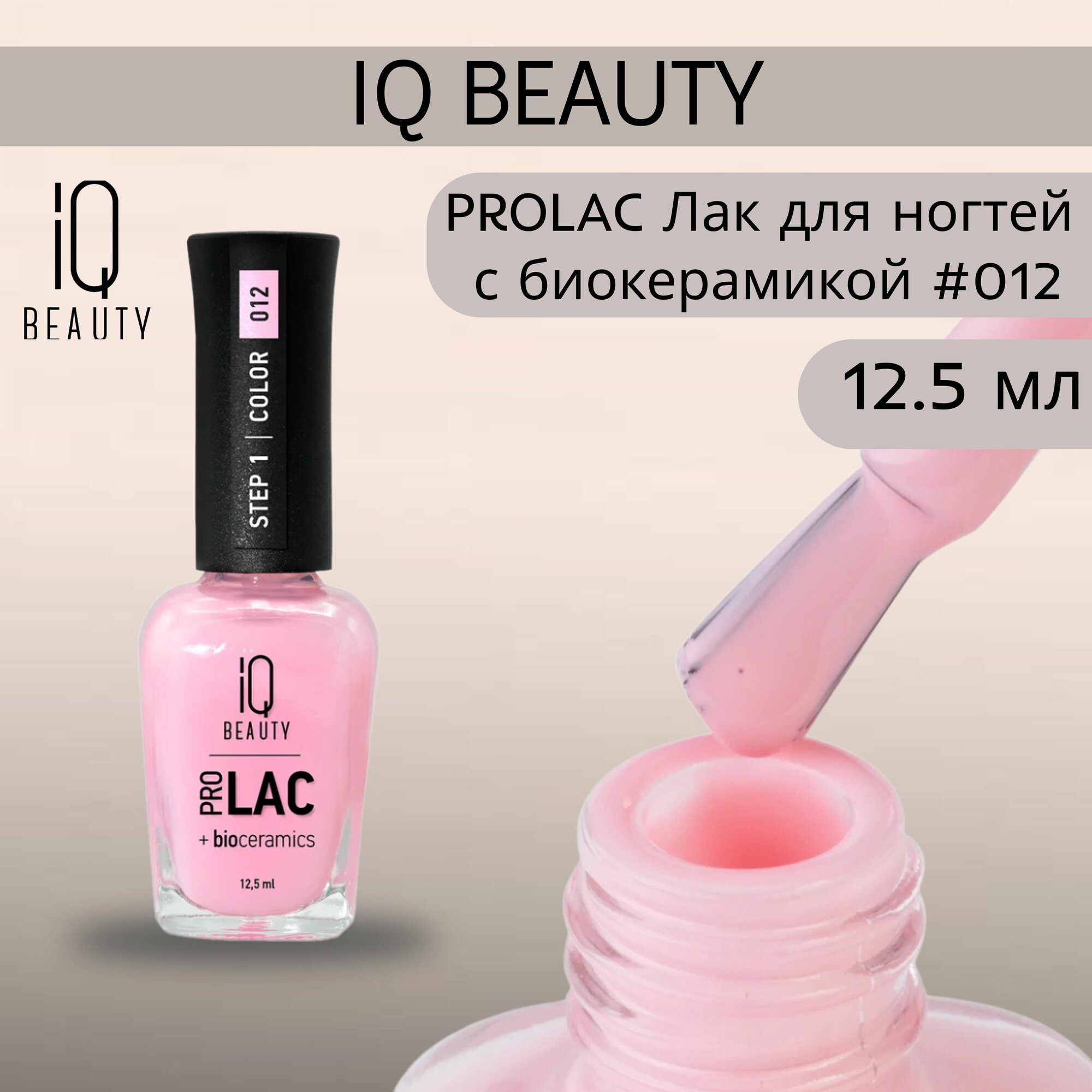 IQ BEAUTY Лак для ногтей укрепляющий с биокерамикой Nail polish PROLAC+bioceramics, 12,5 мл, 002