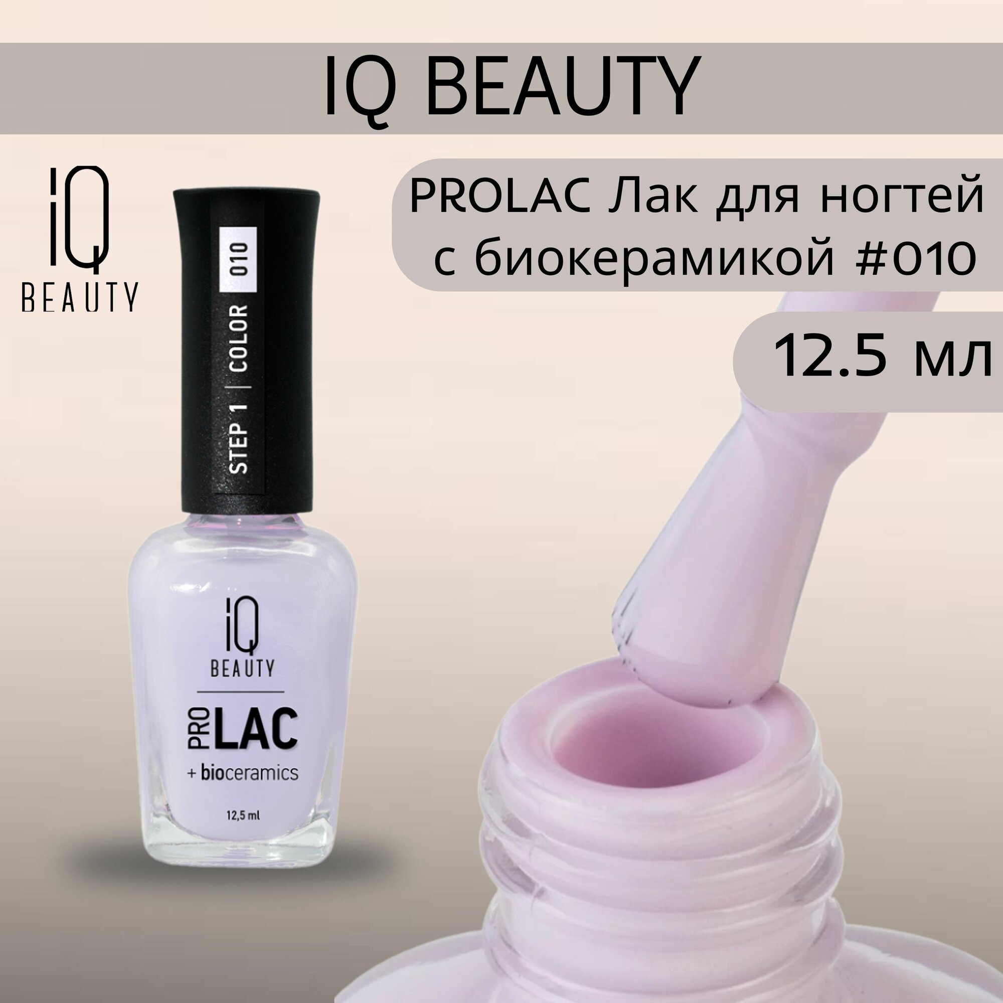 IQ BEAUTY Лак для ногтей укрепляющий с биокерамикой Nail polish PROLAC+bioceramics, 12,5 мл, 002