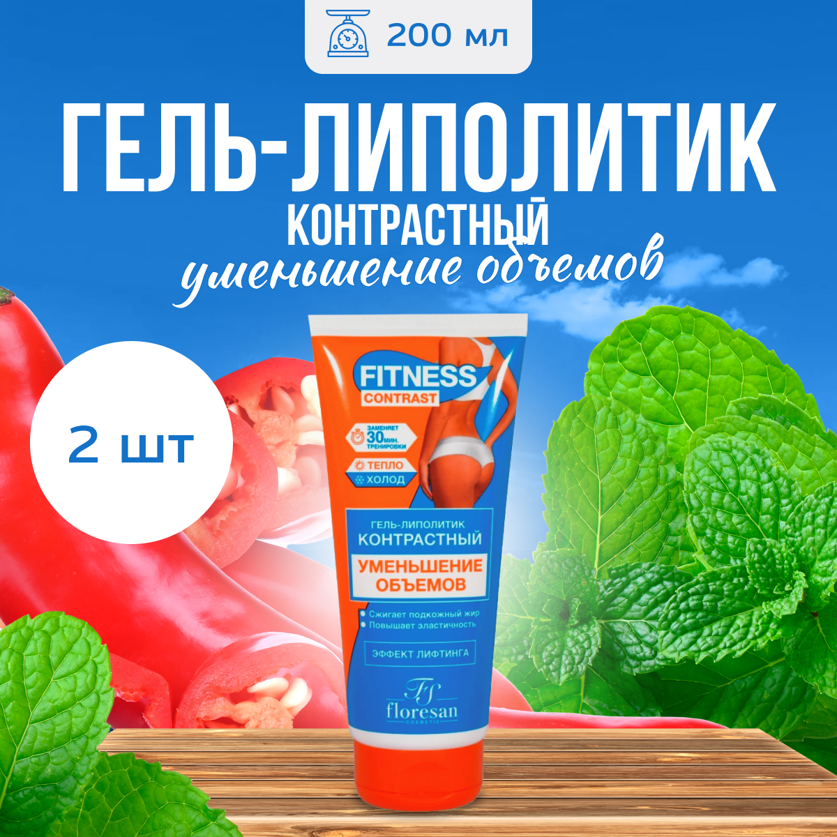 Купить Гель липолитик Floresan для похудения Уменьшение объемов 200 мл 2 шт