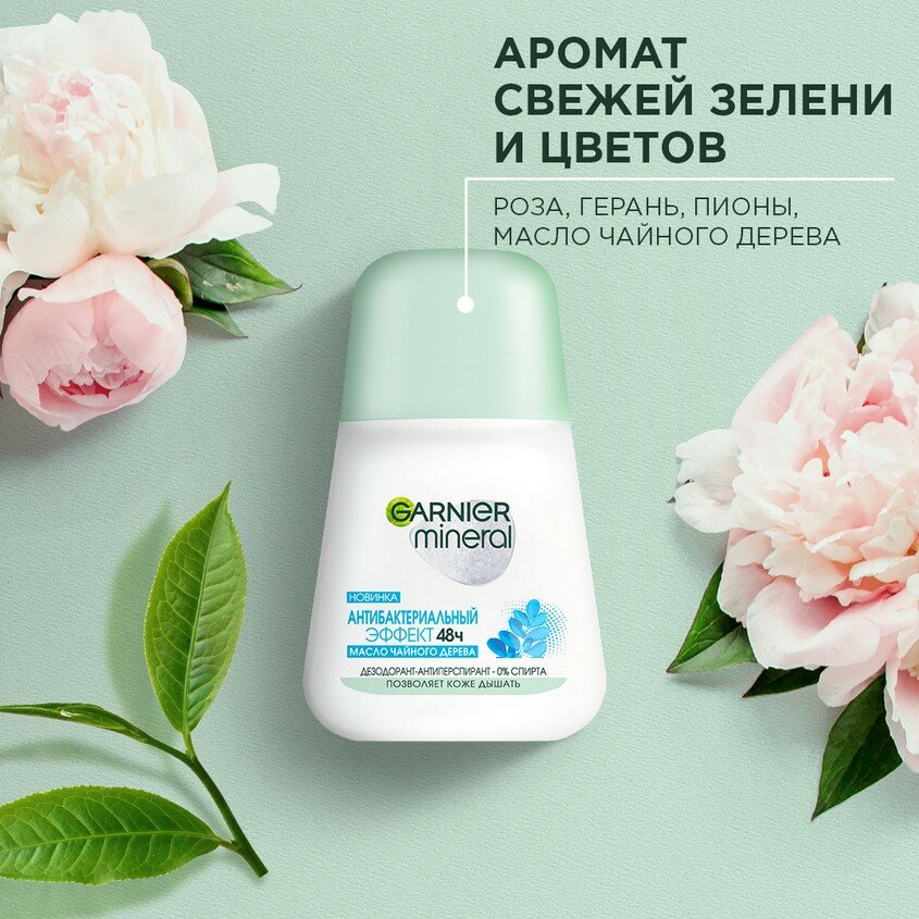 Купить Garnier Дезодорант-антиперспирант роликовый Mineral Антибактериальный эффект, 50 мл