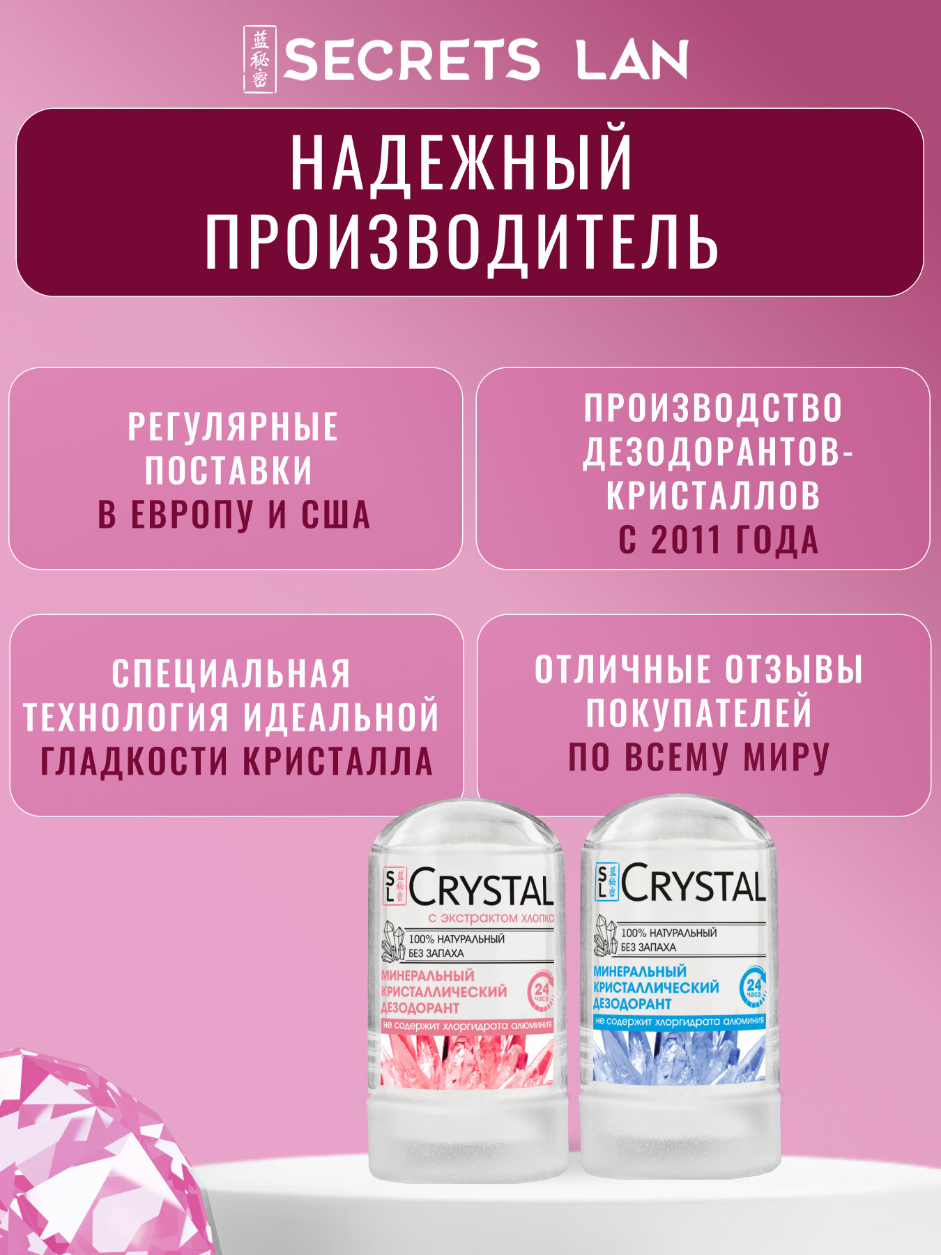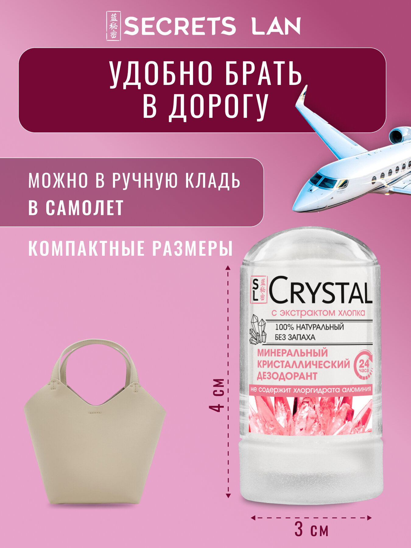Дезодорант женский Secrets Lan твердый минеральный кристалл Алунит с экстрактом хлопка