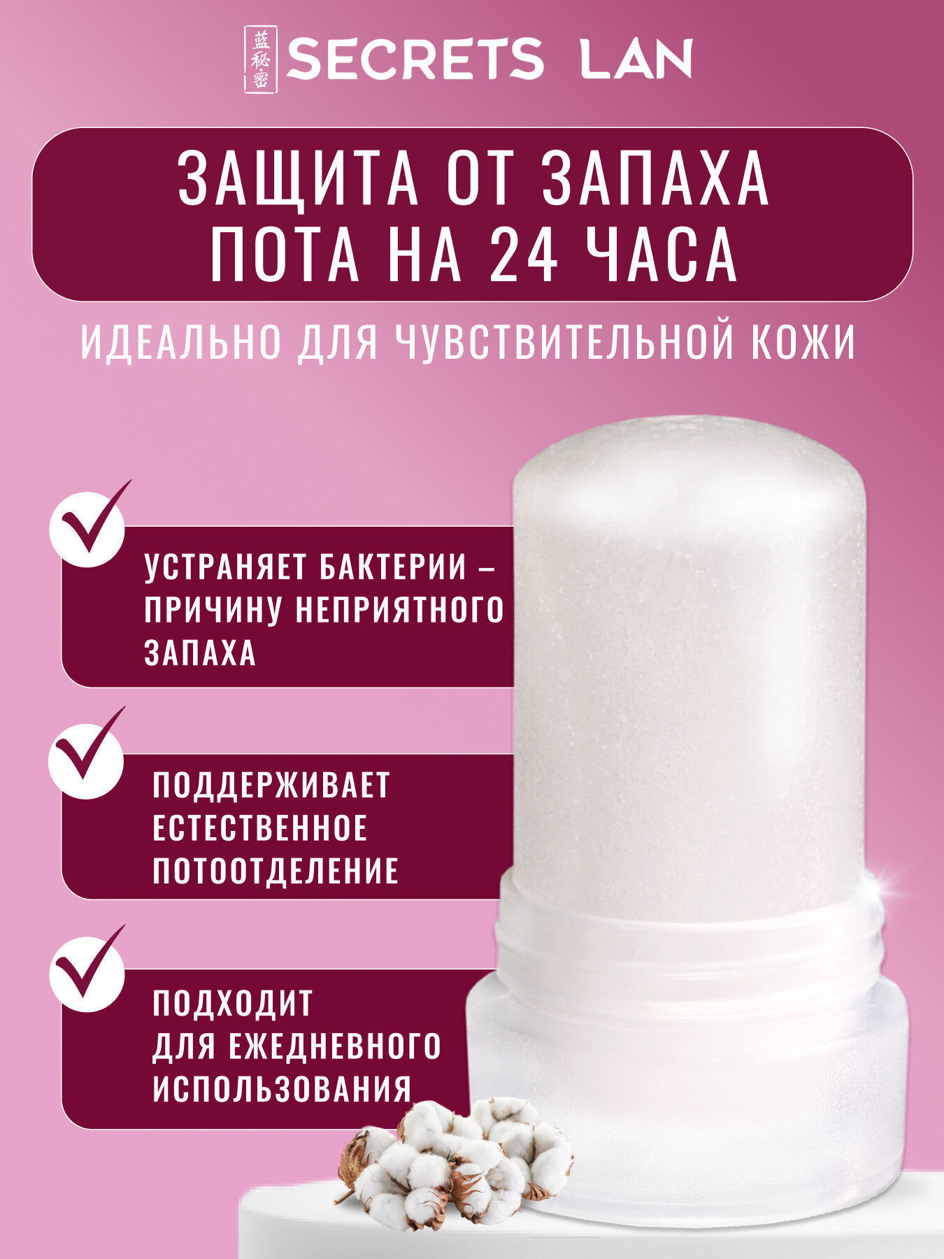 Дезодорант минеральный Secrets Lan твердый кристалл с экстрактом хлопка