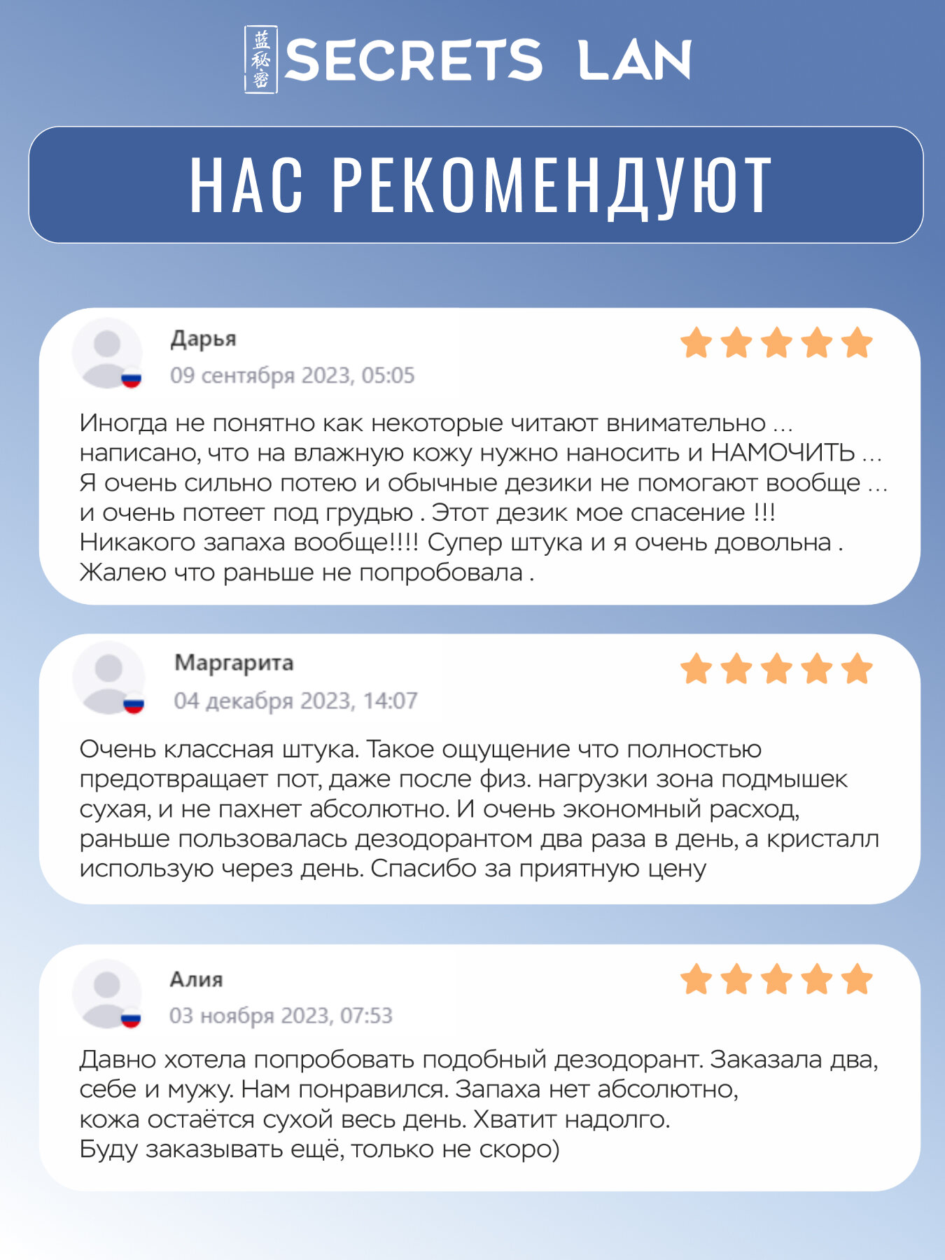 Набор дезодорантов для всей семьи Secrets Lan твердый минеральный кристалл Алунит без запаха 4 шт.