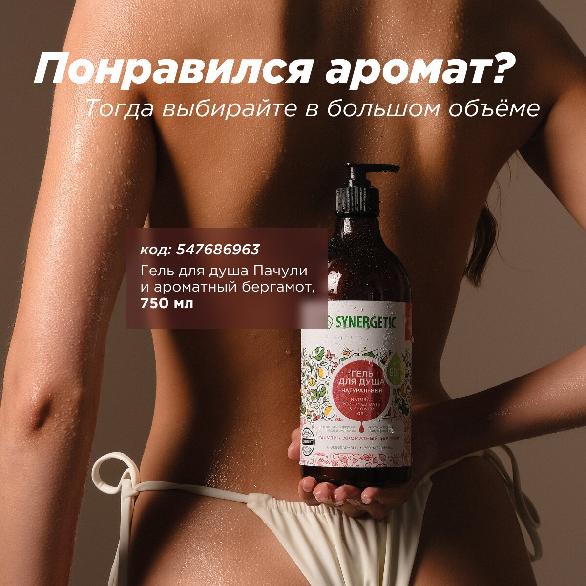 Гель для душа SYNERGETIC "Пачули и ароматный бергамот" увлажняющий, натуральный, 750мл