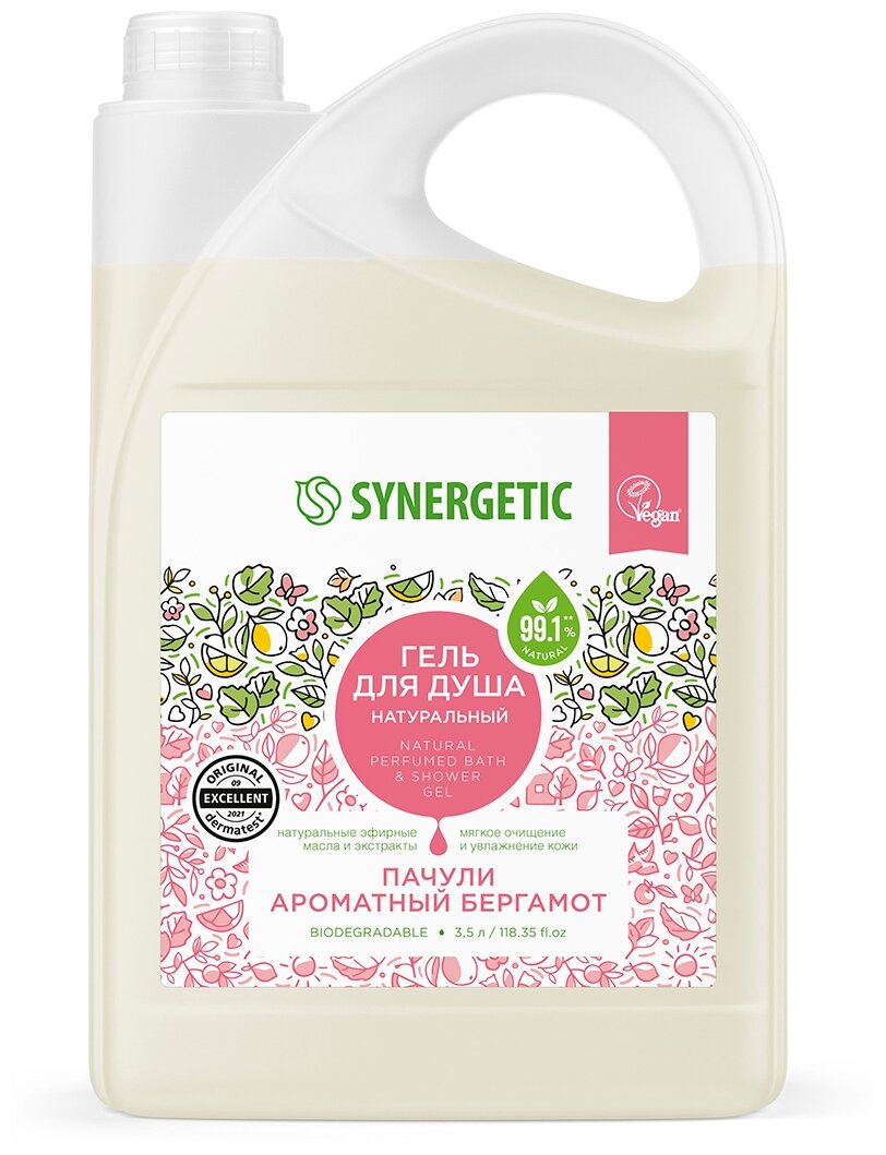 Купить Натуральный биоразлагаемый гель для душа SYNERGETIC Пачули и ароматный бергамот 3,5 л