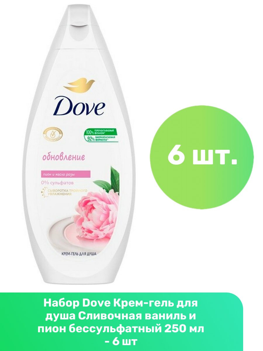 Купить Dove Крем-гель для душа Сливочная ваниль и пион бессульфатный 250 мл - 6 шт