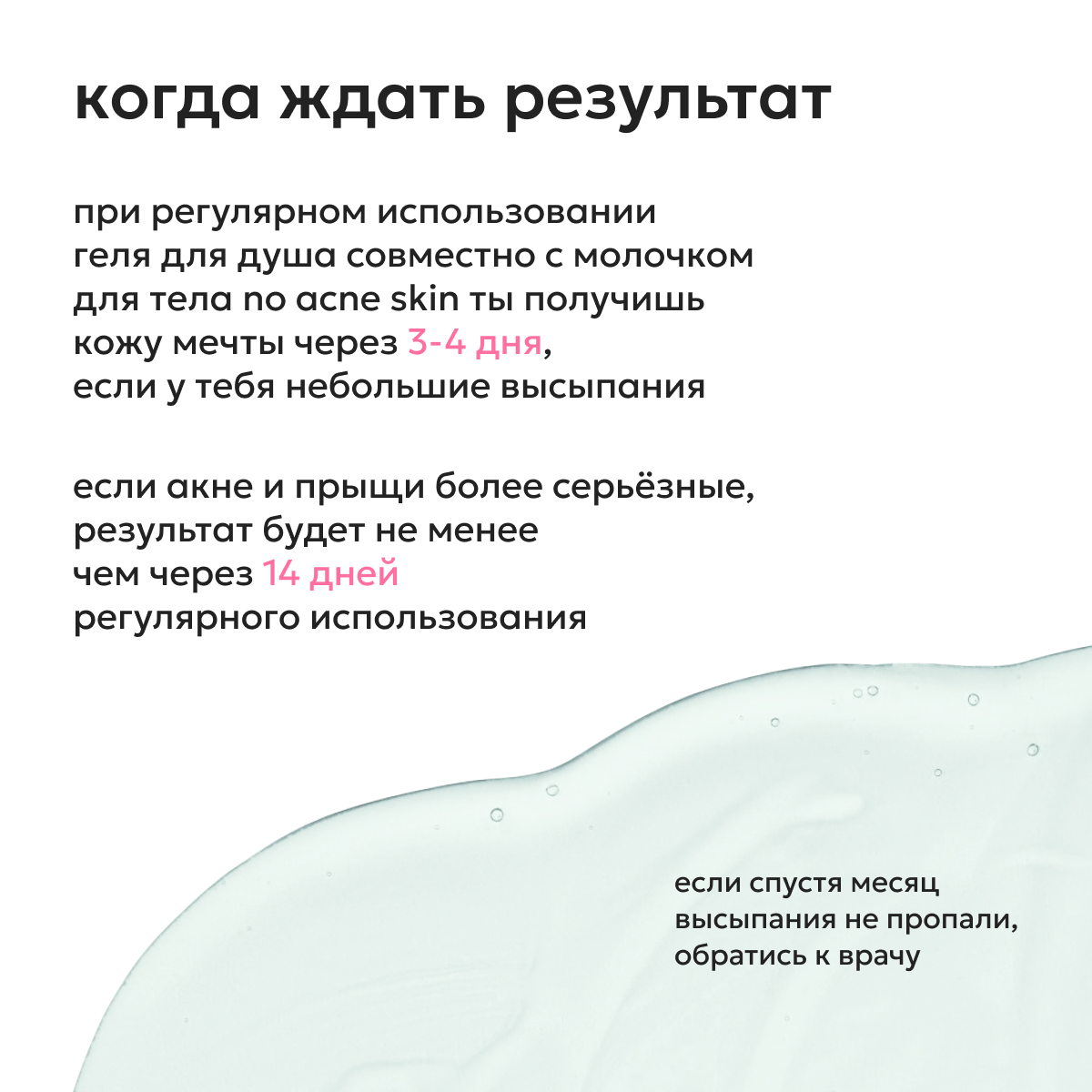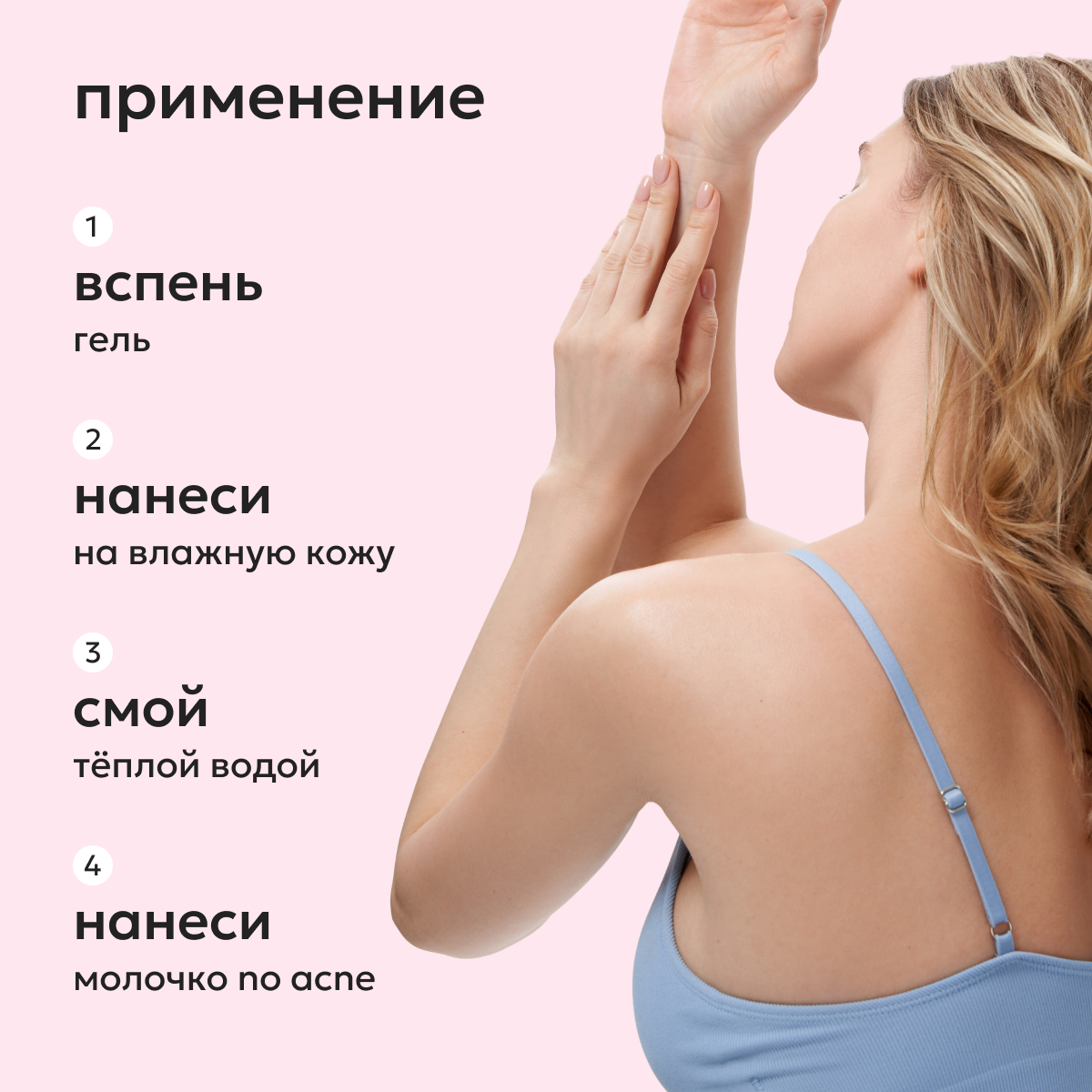 | Способ применения | Способ применения: Нанести гель на влажную кожу тела, вспенить, помассировать. Смыть водой. Подходит для ежедневного использования. Только для наружного применения. Не использовать на открытых ранах или раздраженной коже. При попадании в глаза тщательно промыть водой. В случае индивидуальной непереносимости компонентов прекратить использование. Для более выраженного эффекта рекомендуем применять с продуктом: Увлажняющее молочко-флюид для тела против несовершенств кожи. |
