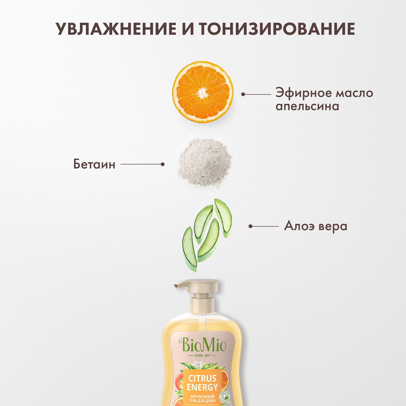 Гель для душа натуральный BioMio Bio Shower Gel "Citrus Energy" с эфирными маслами апельсина и бергамота, тонизирование и пробуждение, 250 мл.