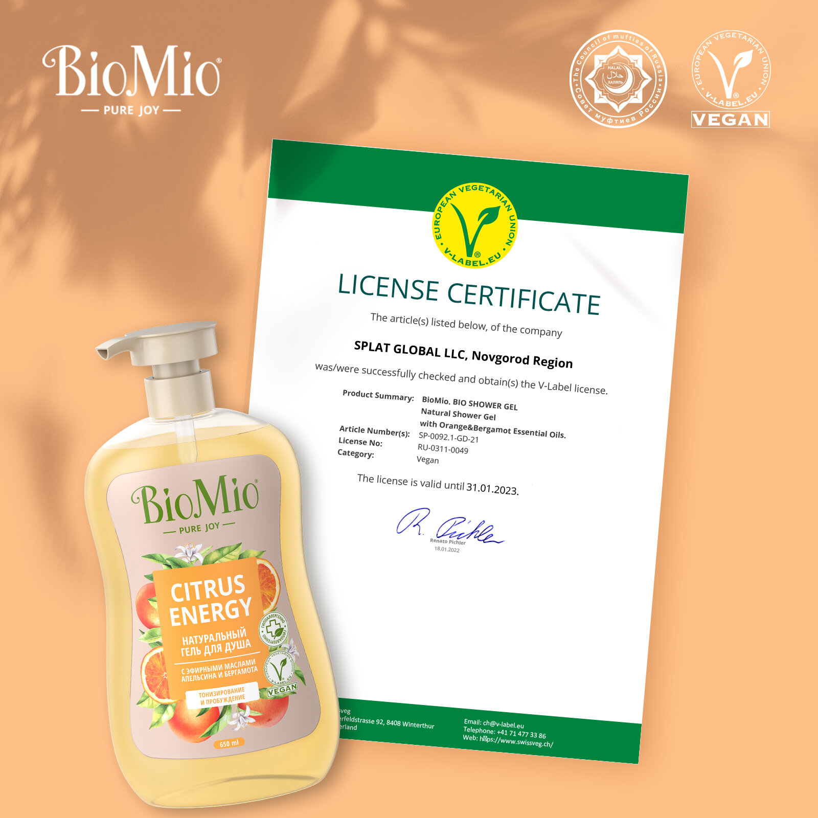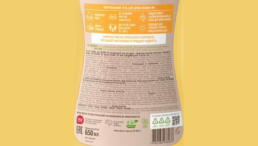 Натуральный гель для душа Biomio с эфирными маслами апельсина и бергамота, 650 мл