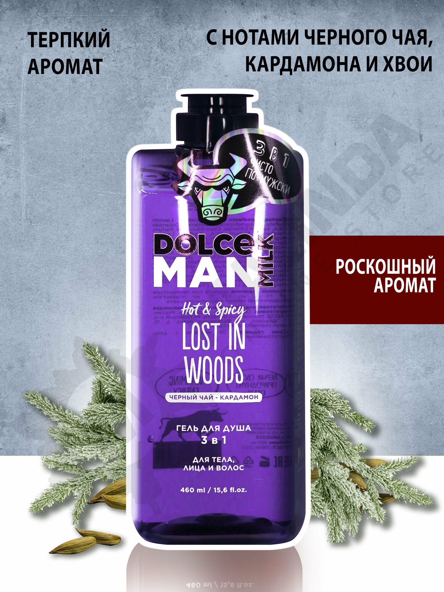 DOLCE MILK Гель для душа 3в1 Tree Spirit Man, Кедр ветивер и перец, 460мл