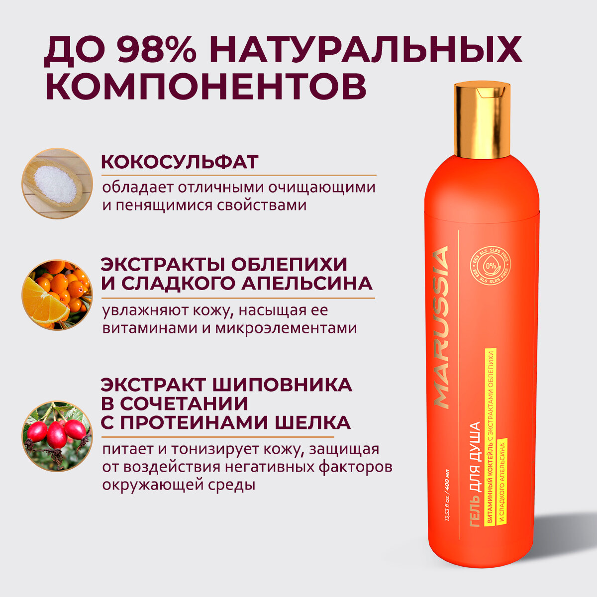 Купить Marussia Гель для душа женский мужской парфюмированный, «Витаминный коктейль» с экстрактами облепихи и сладкого апельсина, 400 мл