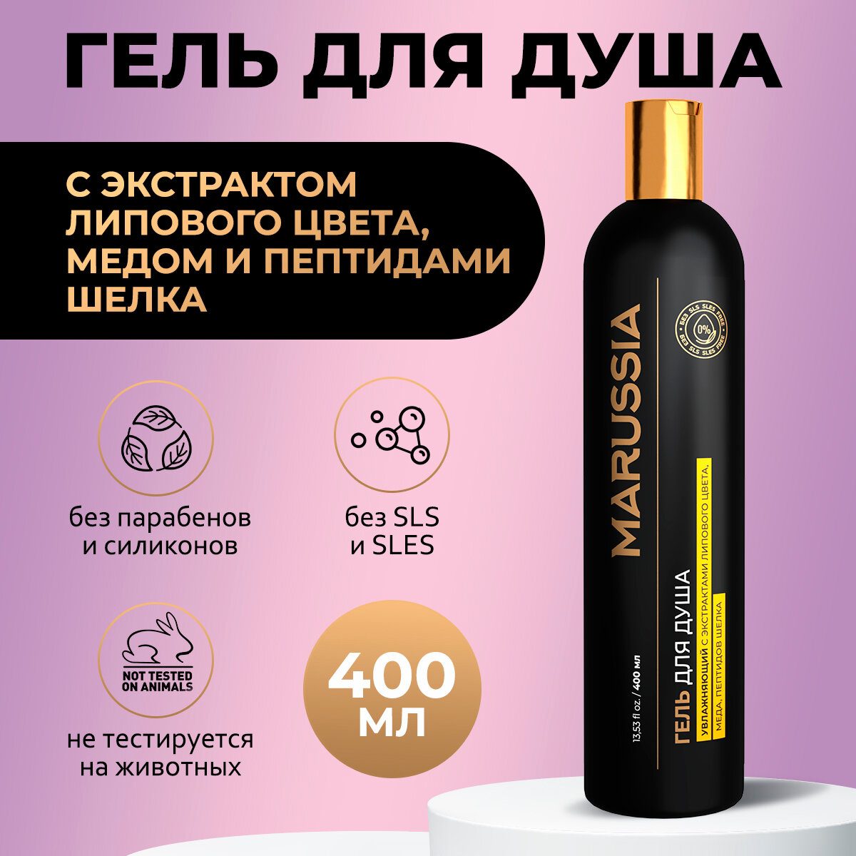 Купить Marussia Гель для душа женский мужской парфюмированный увлажняющий, с экстрактами липового цвета, меда, пептидов шелка, 400 мл