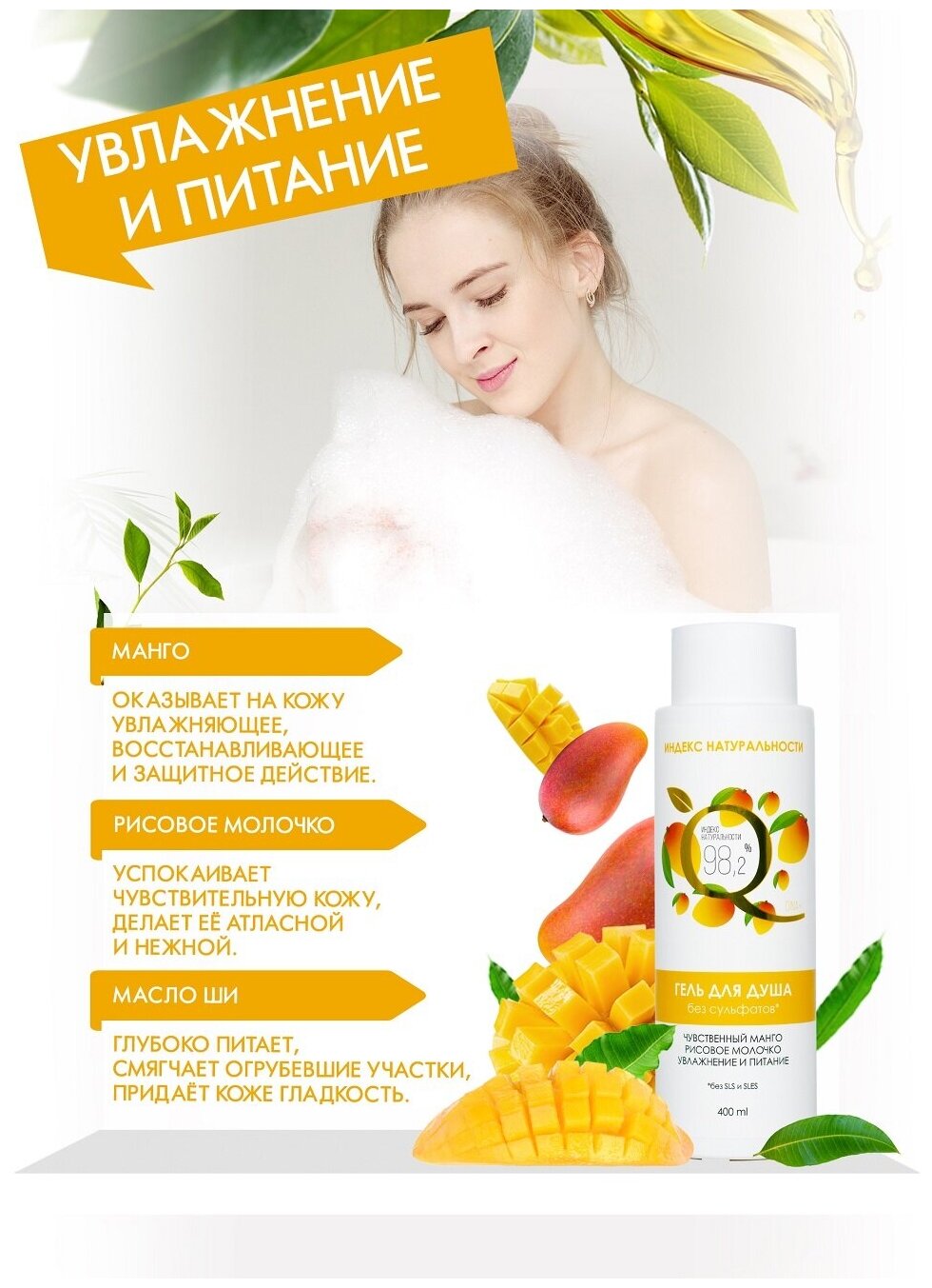 Очищающий гель для душа без сульфатов, Чувственный Манго, 400ml индекс натуральности