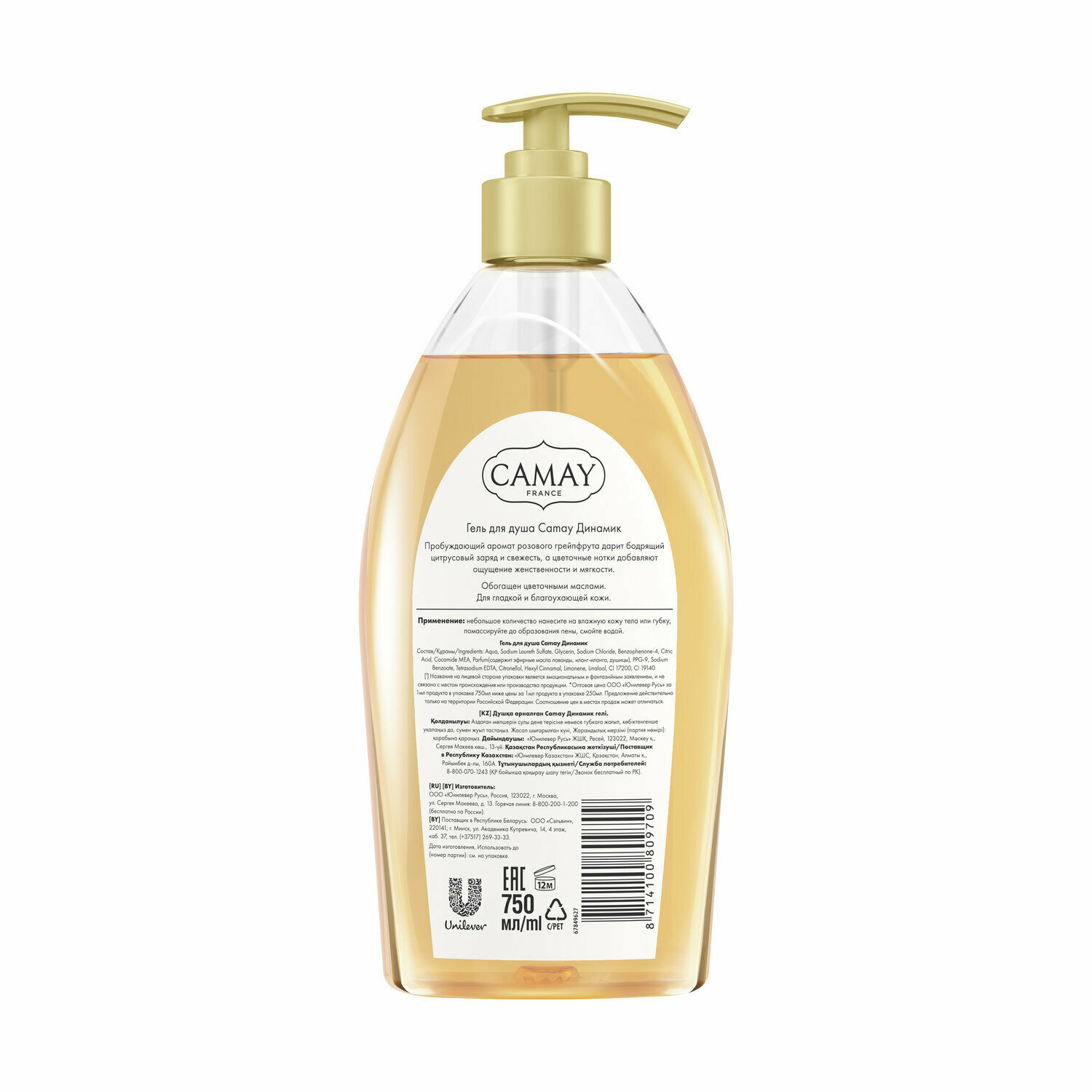 Гель для душа женский парфюмированный CAMAY Динамик с ароматом розового грейпфрута для всех типов кожи 750 мл
