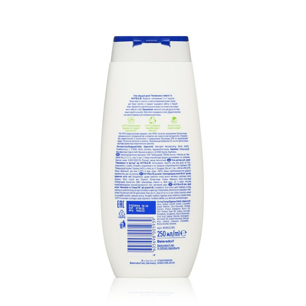 NIVEA Гель-уход для душа "Увлажнение и забота" 250мл4 6854 685