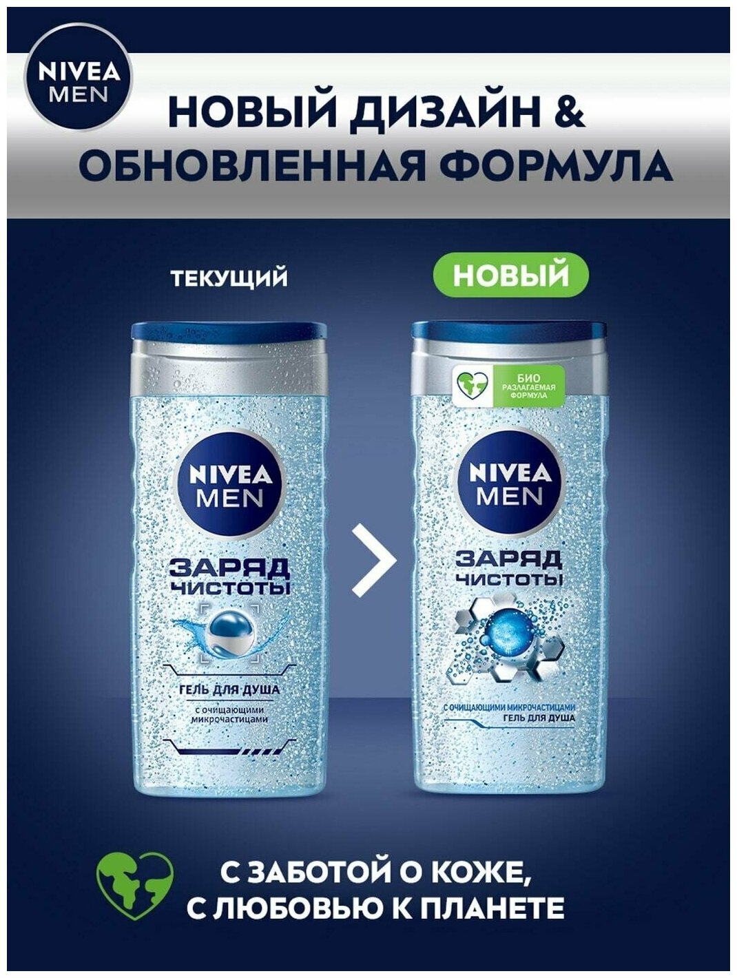 Гель для душа мужской NIVEA MEN "Заряд чистоты" с очищающими микрочастицамиарктическая свежесть, 250 мл, 285 г