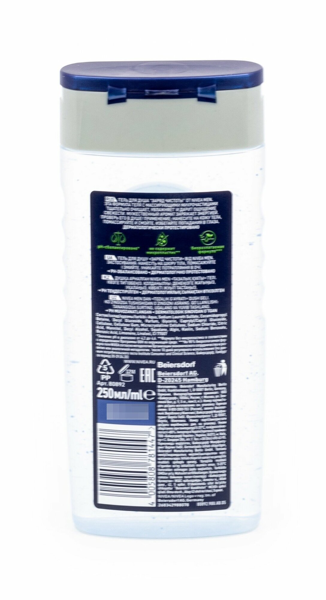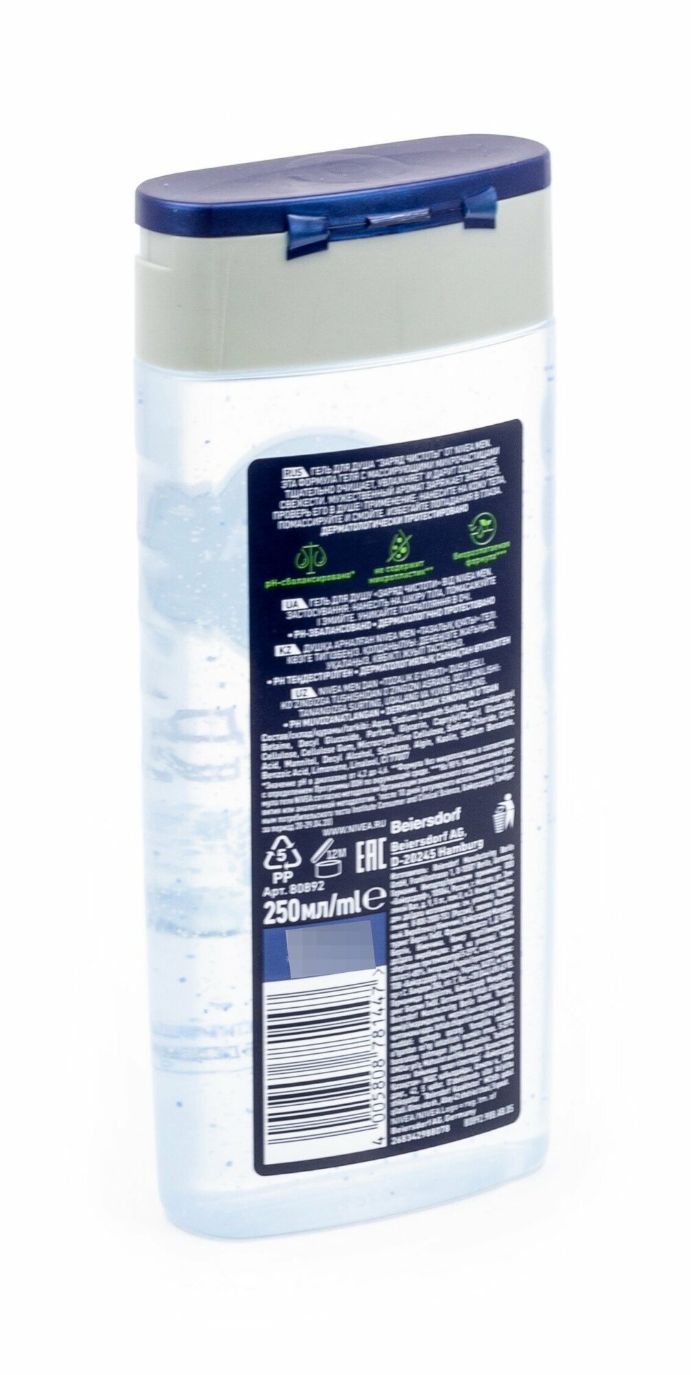 Гель для душа мужской NIVEA MEN "Заряд чистоты" с очищающими микрочастицамиарктическая свежесть, 250 мл, 285 г