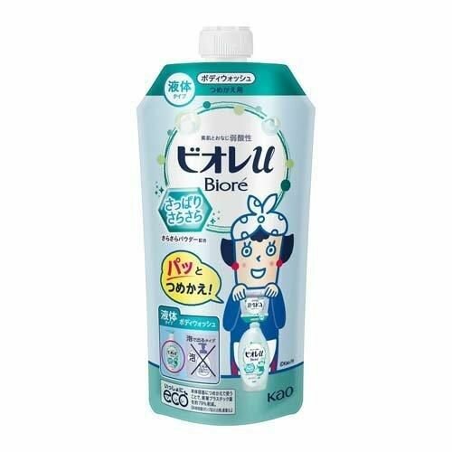 KAO Жидкое мыло гель для тела Biore U Refreshing Smooth с шелковистой пудрой и освежающим ароматом зеленых цитрусов, запасной блок 340мл. интересное:
