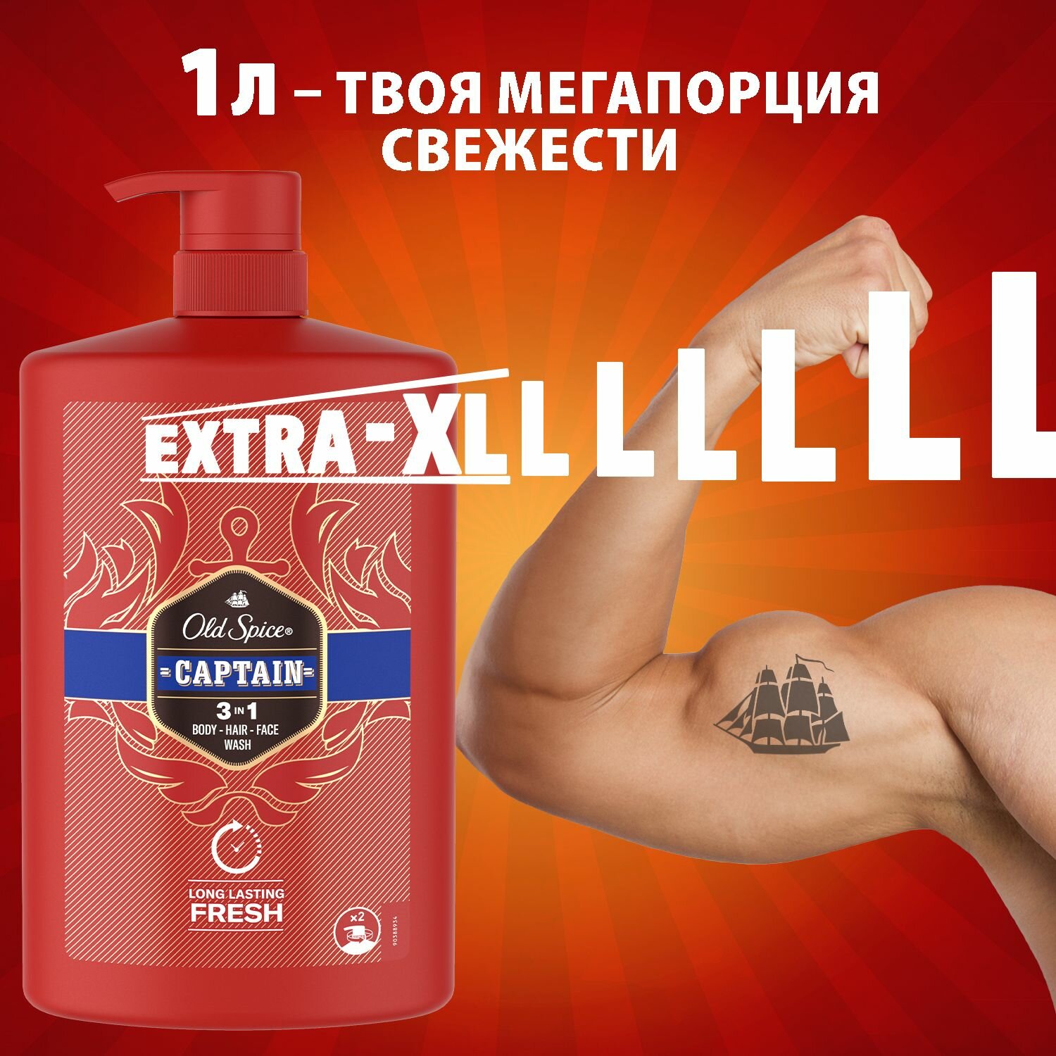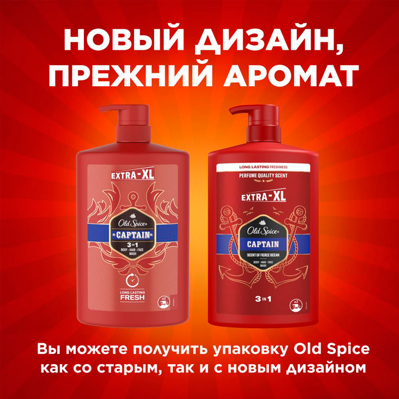 OLD SPICE мужской гель для душа + шампунь 3в1 Captain 1л интересное:
