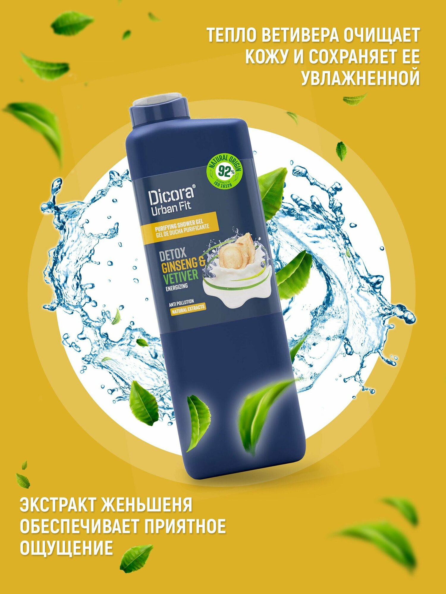 Купить Гель для душа Dicora Urban Fit energy Vetiver & Ginseng ветивер и женьшень мужской 750мл 8410262902073