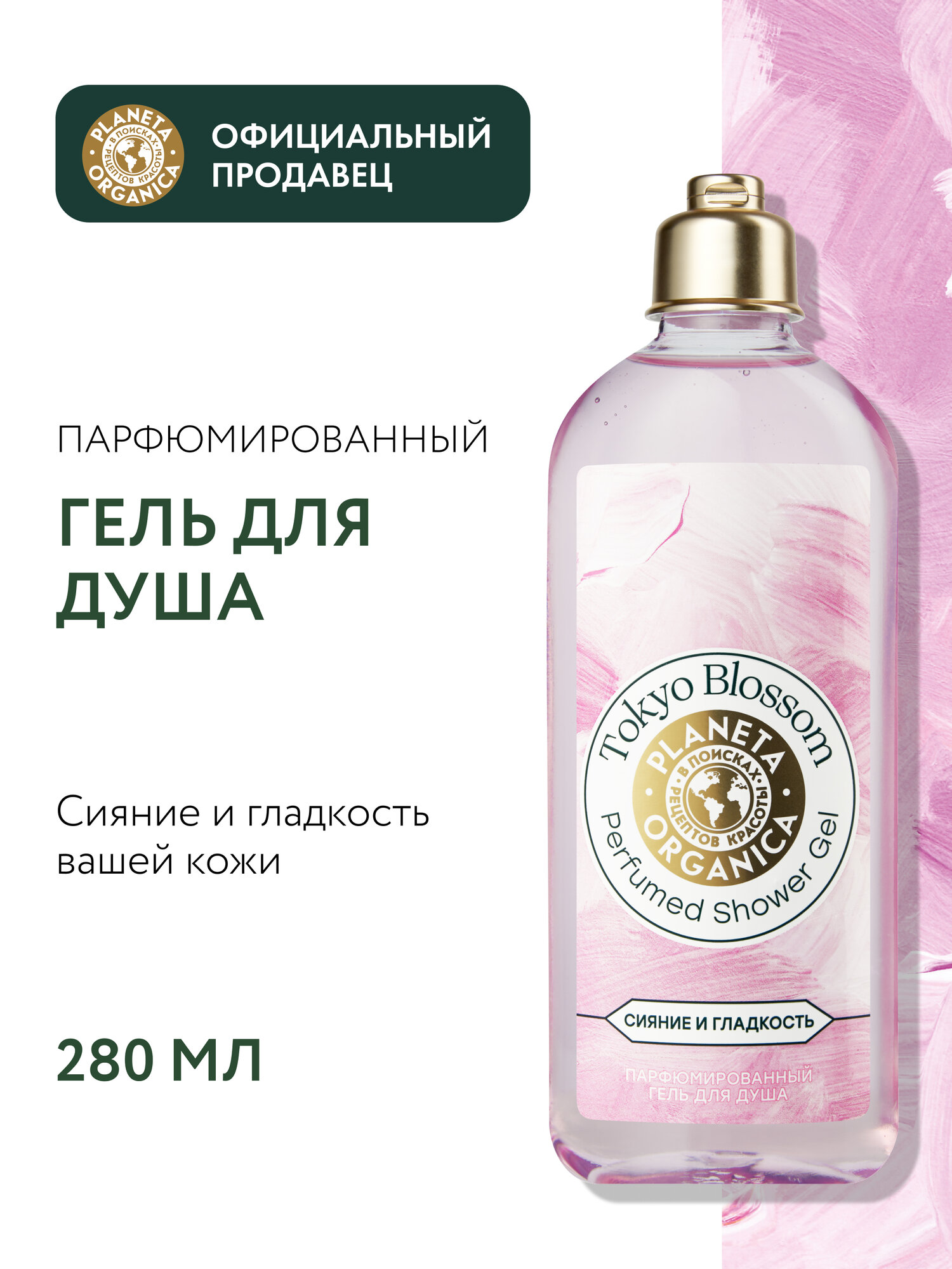 Planeta Organica Tokyo Blossom Гель для душа женский парфюмированный увлажняющий с ароматом миндаля, вишни и сандала 280 мл