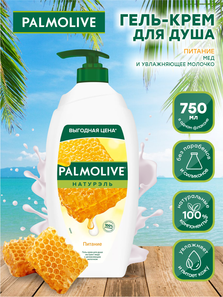 Гель - крем для душа женский Palmolive Натурэль Питание с увлажняющим молочком, 750 мл