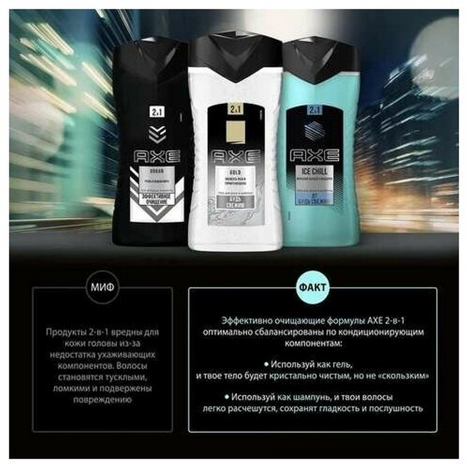Axe Гель для душа и шампунь 2 в 1 мужской GOLD Аромат горных вершин, свежесть 12 часов, 250 мл - 3 шт
