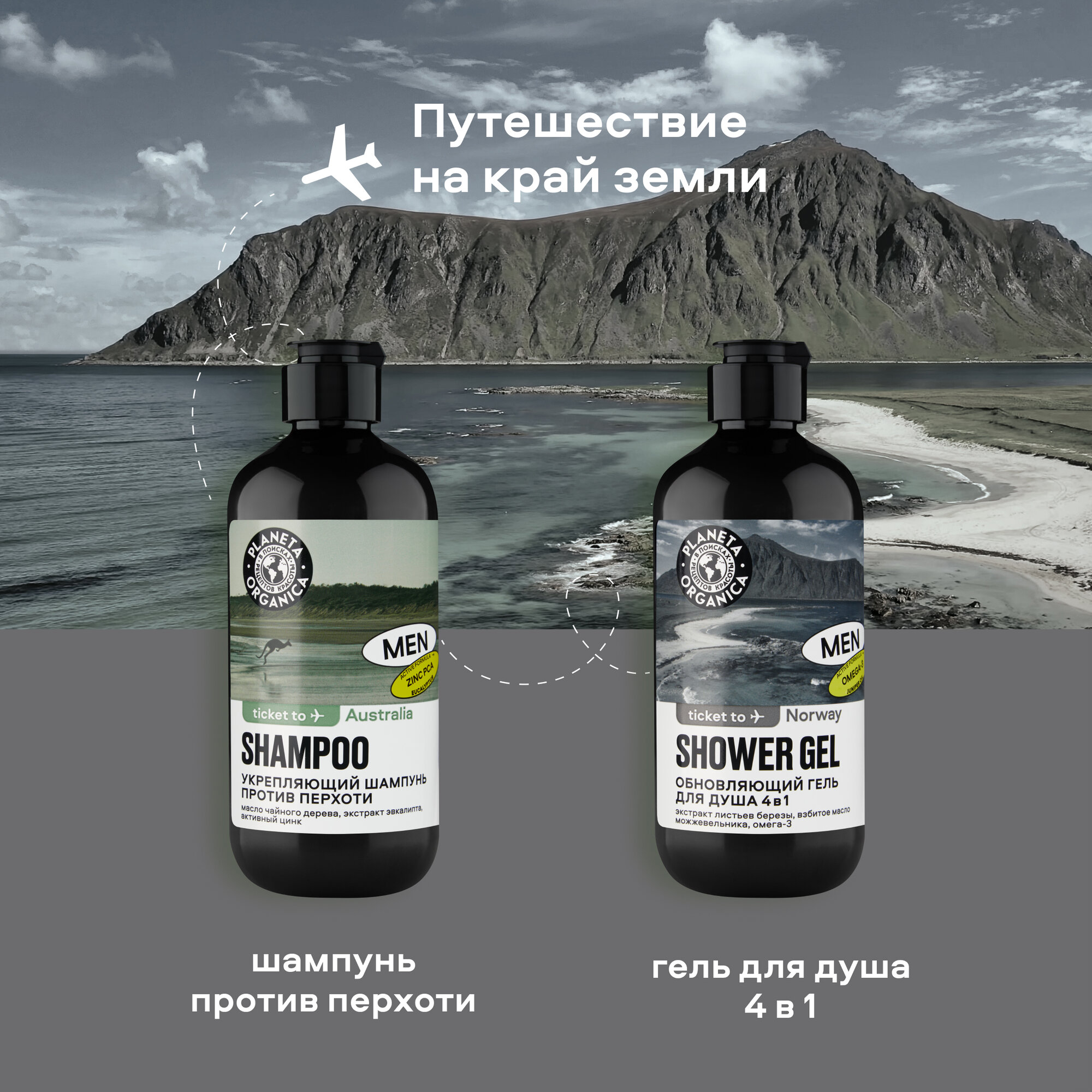 Planeta Organica MEN Ticket to Norway Гель для душа мужской 4в1 обновляющий с ароматом цитруса, сандала, бергамота и можжевельника 400 мл