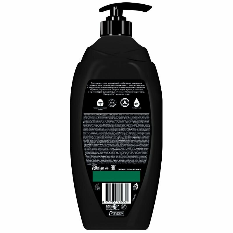 Palmolive Гель для душа FOR MEN, Эффект бани, Глубокое очищение 2 в 1, 750мл интересное: