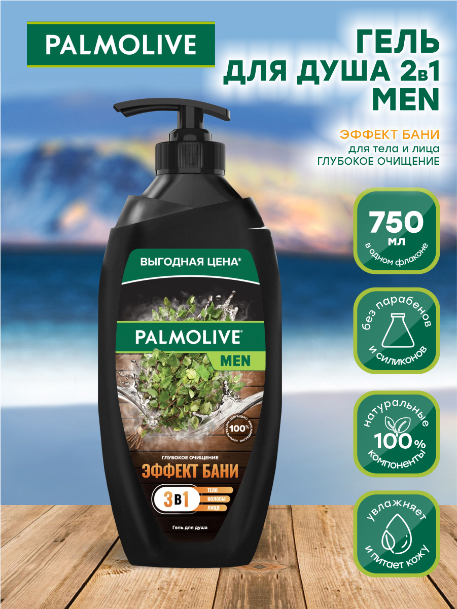 Купить Palmolive Гель для душа FOR MEN, Эффект бани, Глубокое очищение 2 в 1, 750мл